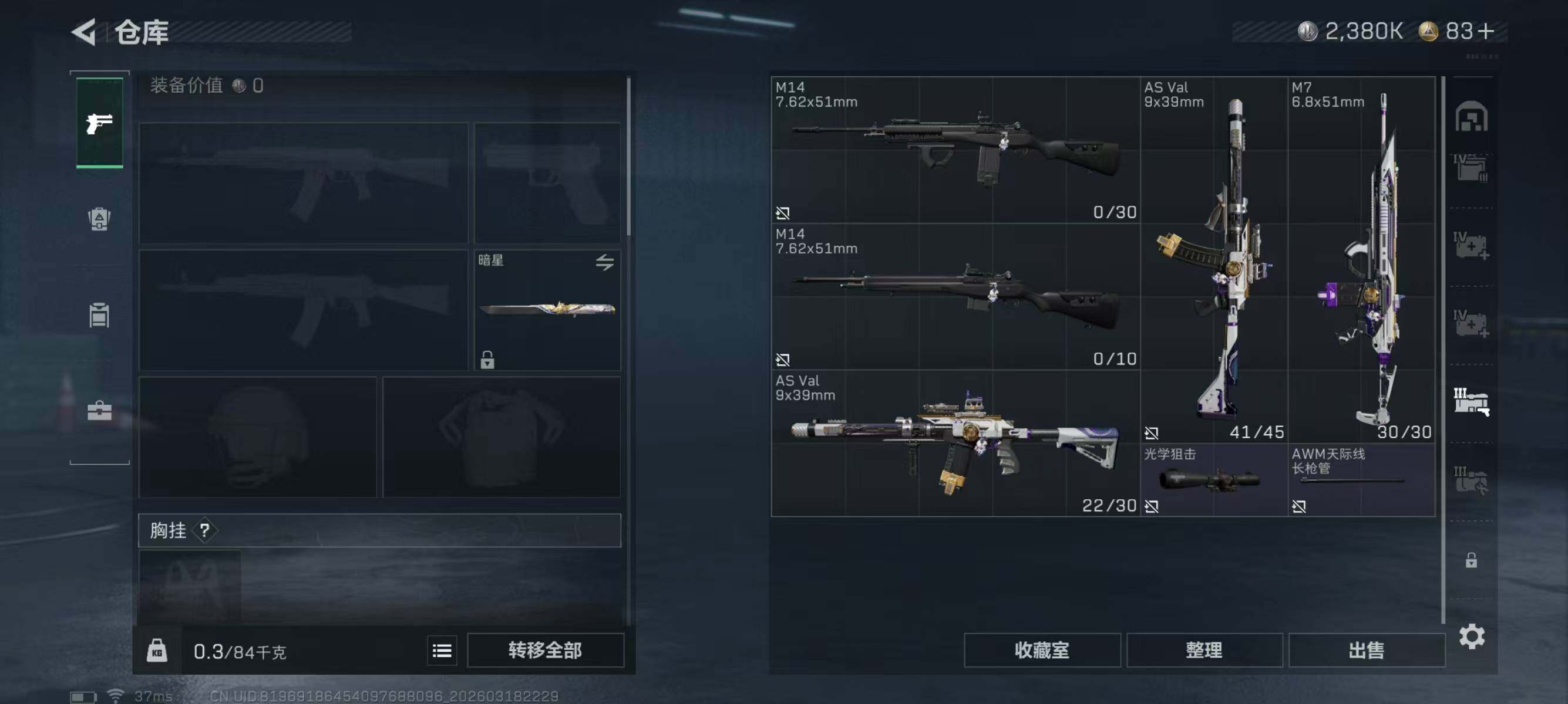 【SJZYT625】总资产(M):104M/哈夫币(K):2380K/哈夫币(