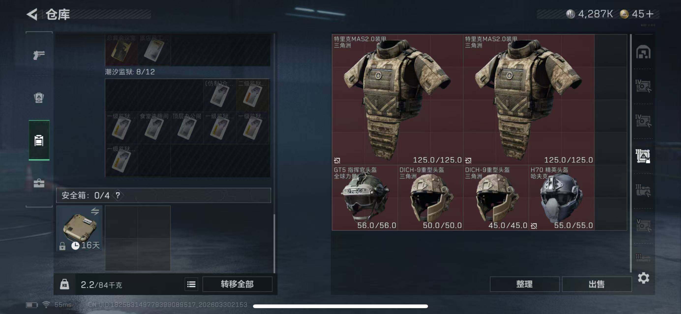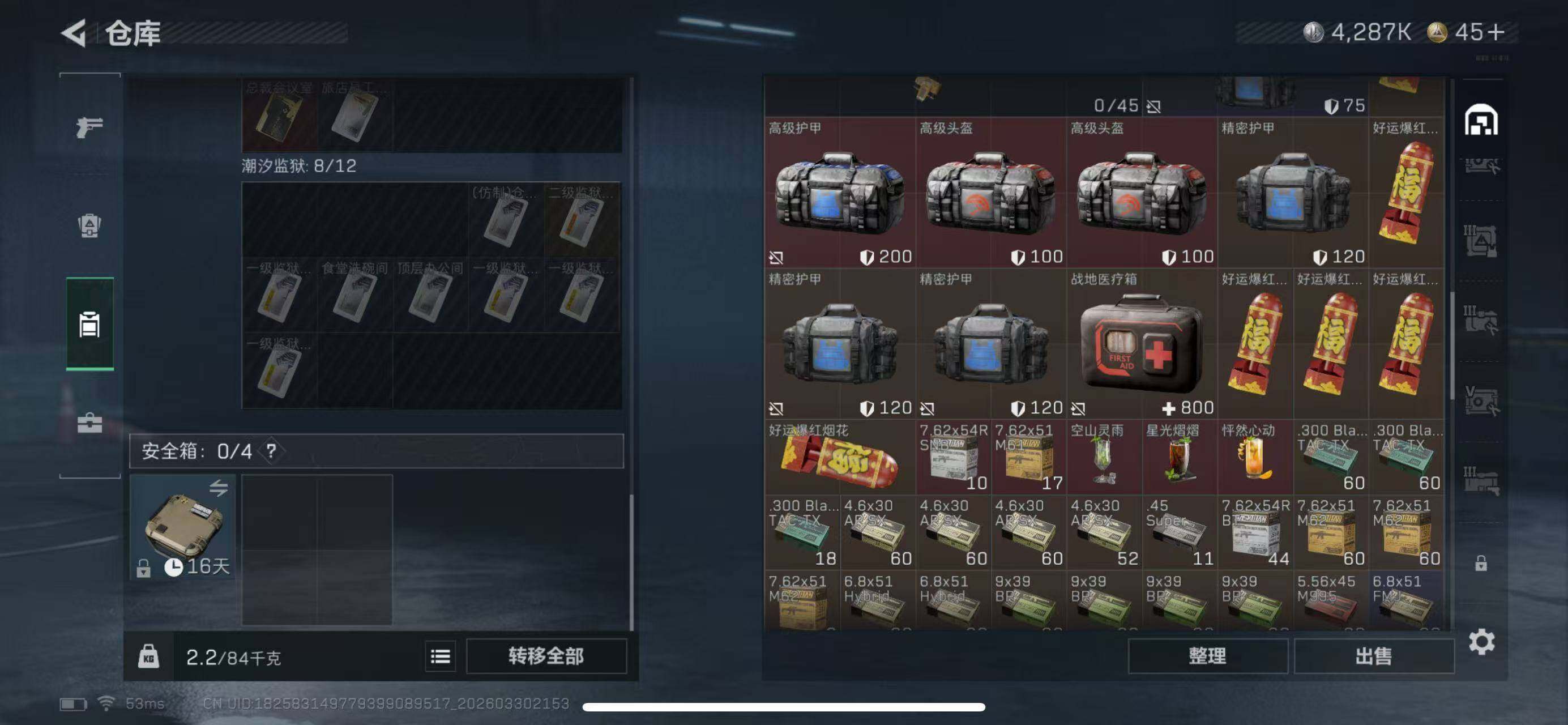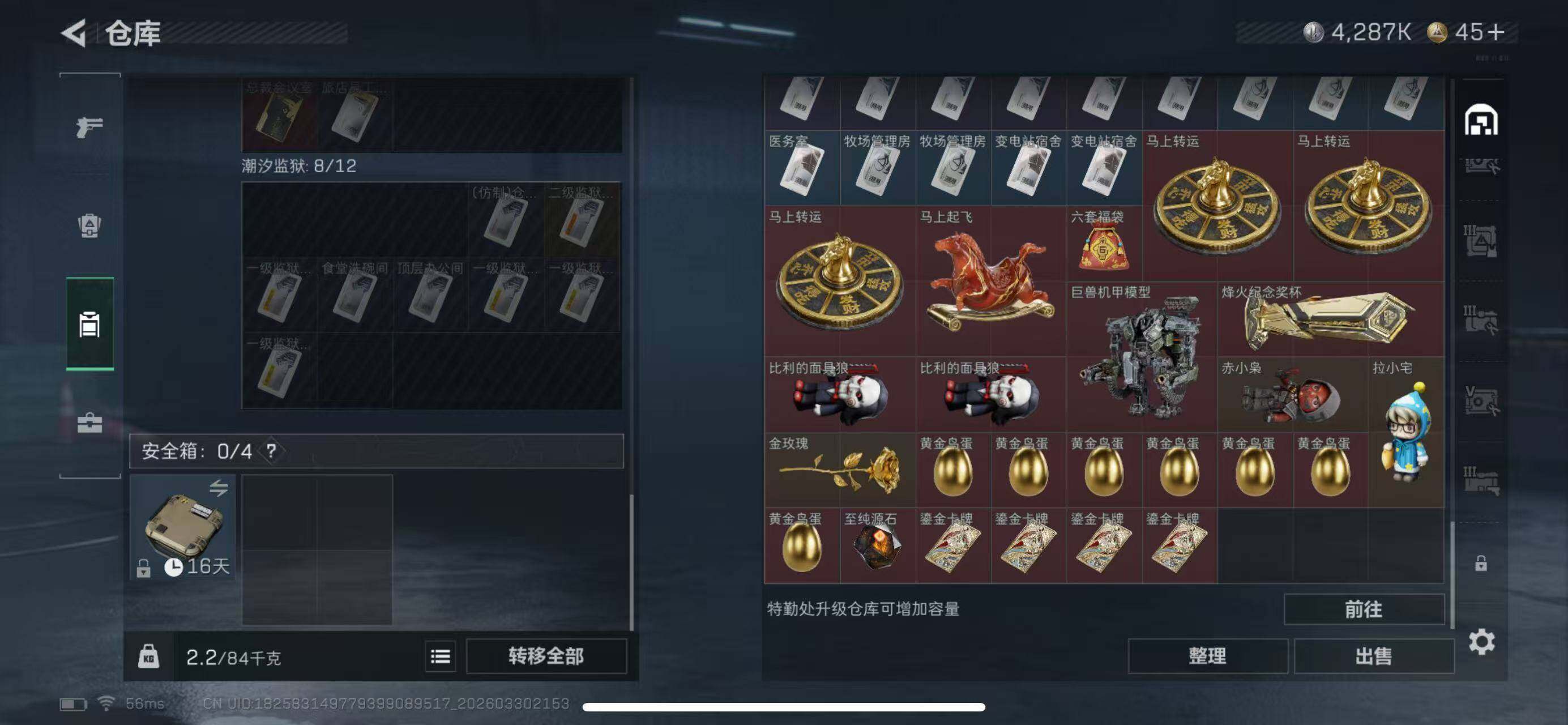 【SJ1608】行动等级:60 总资产:197M 哈夫币:4287K 近战武器