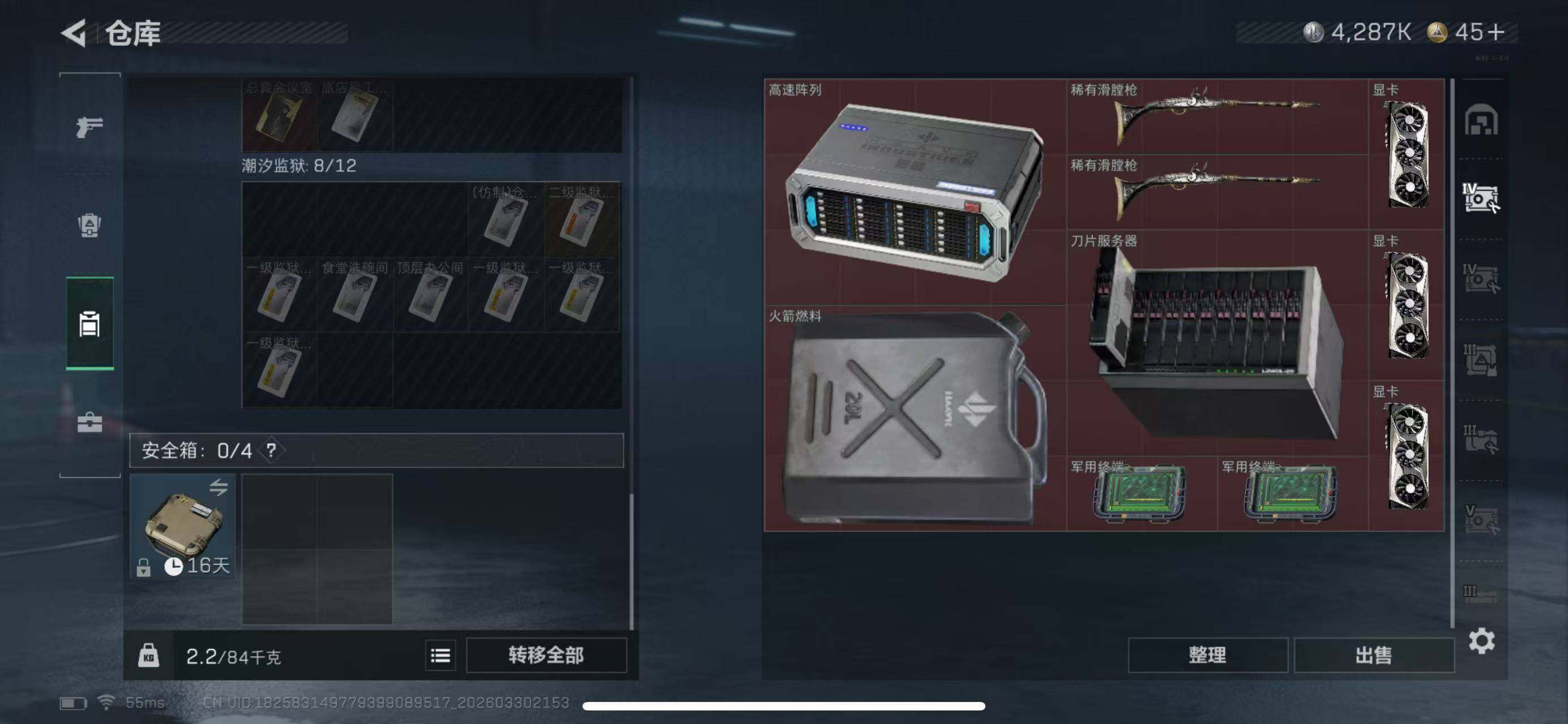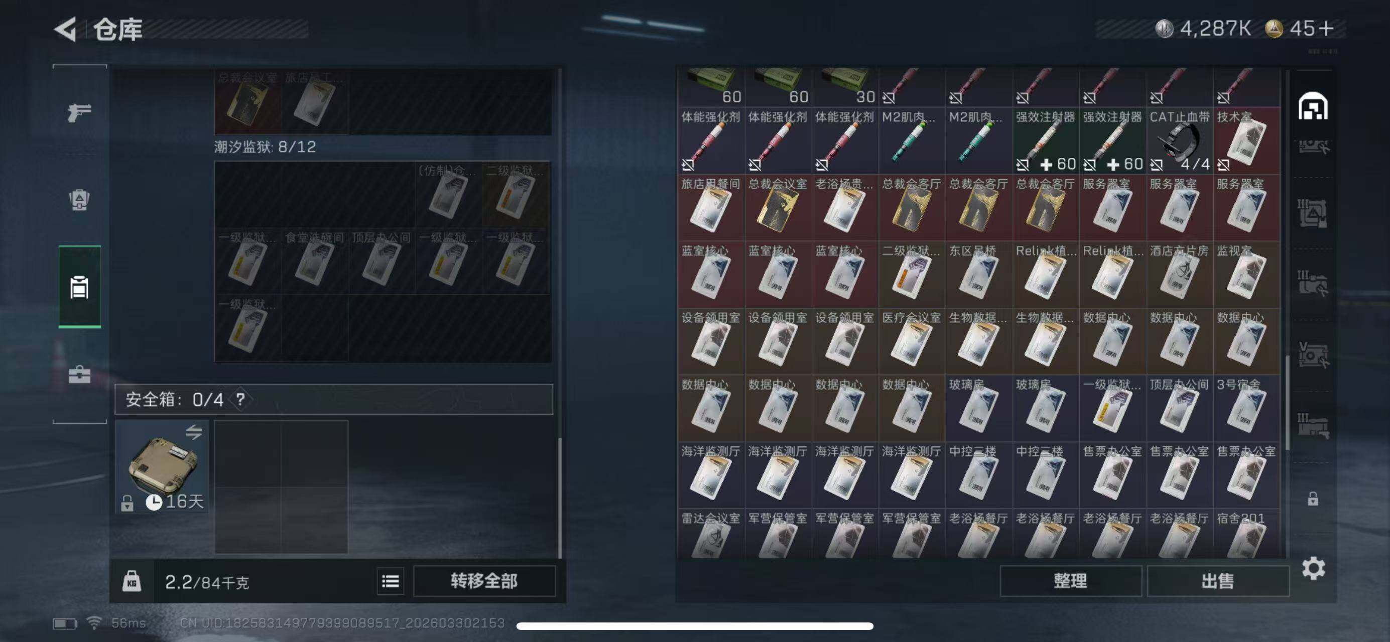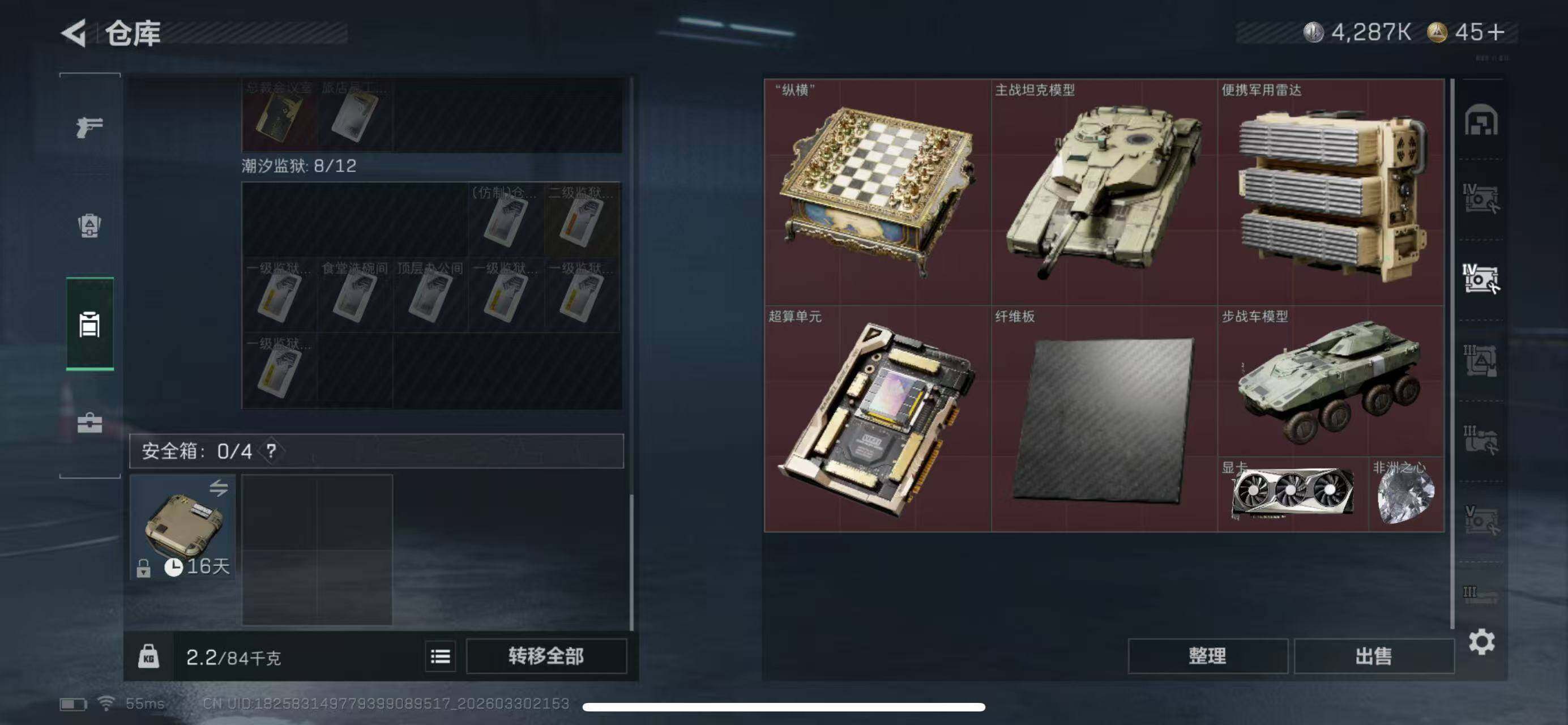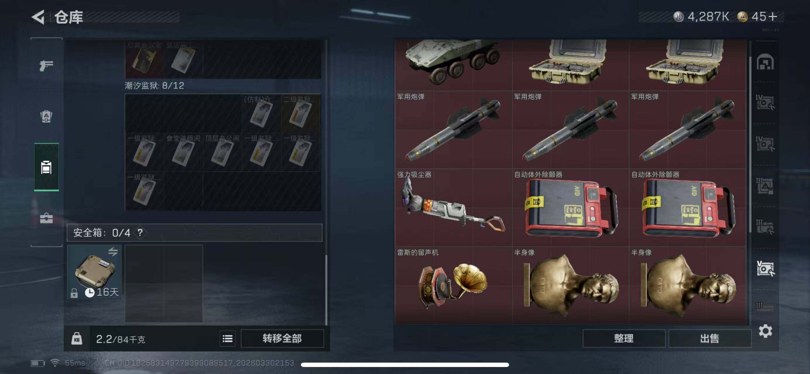 【SJ1608】行动等级:60 总资产:197M 哈夫币:4287K 近战武器