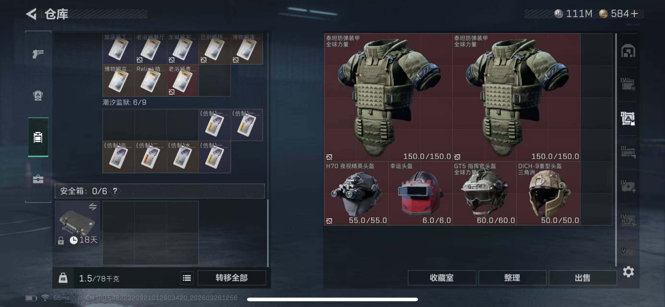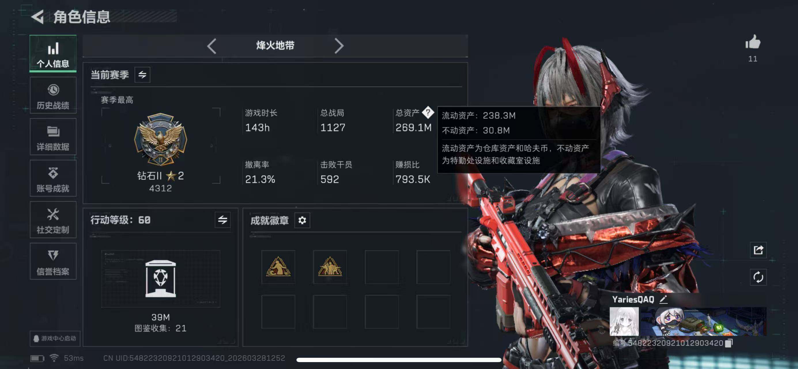 【SJ1568】266m总资产-111400k哈夫币-60烽火等级-钻石-1战