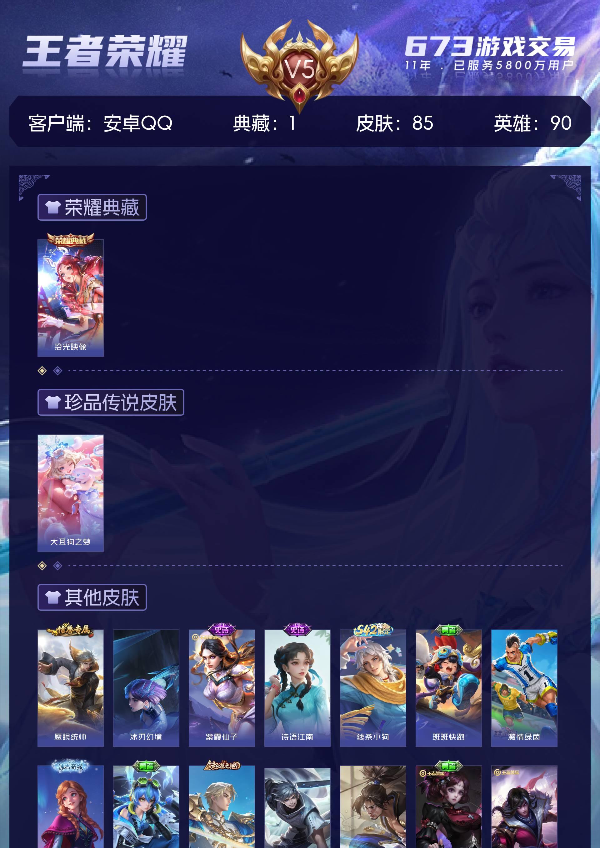 V5 皮肤85 英雄90 尊贵铂金 荣耀典藏1 珍品传说1