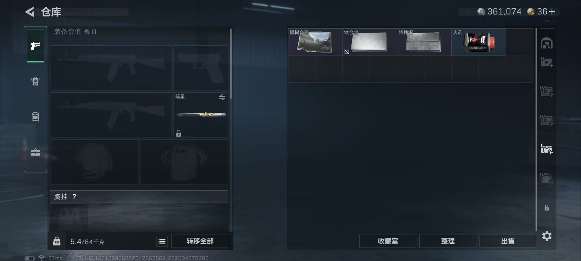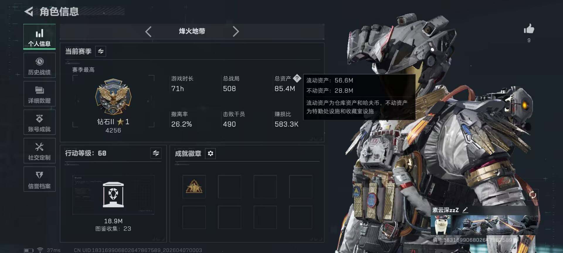 【SJZG4713】总资产(M):85M/哈夫币(K):361K/哈夫币(K)