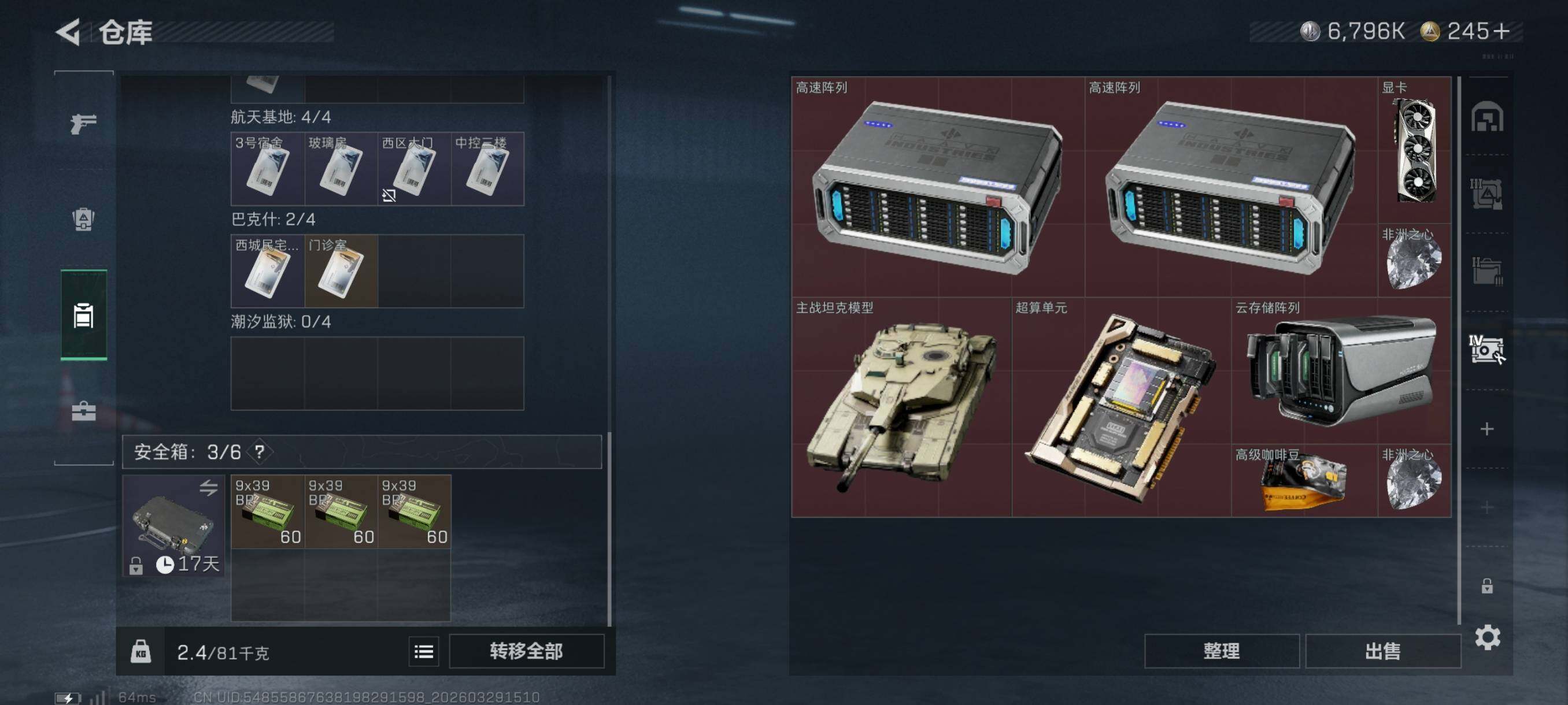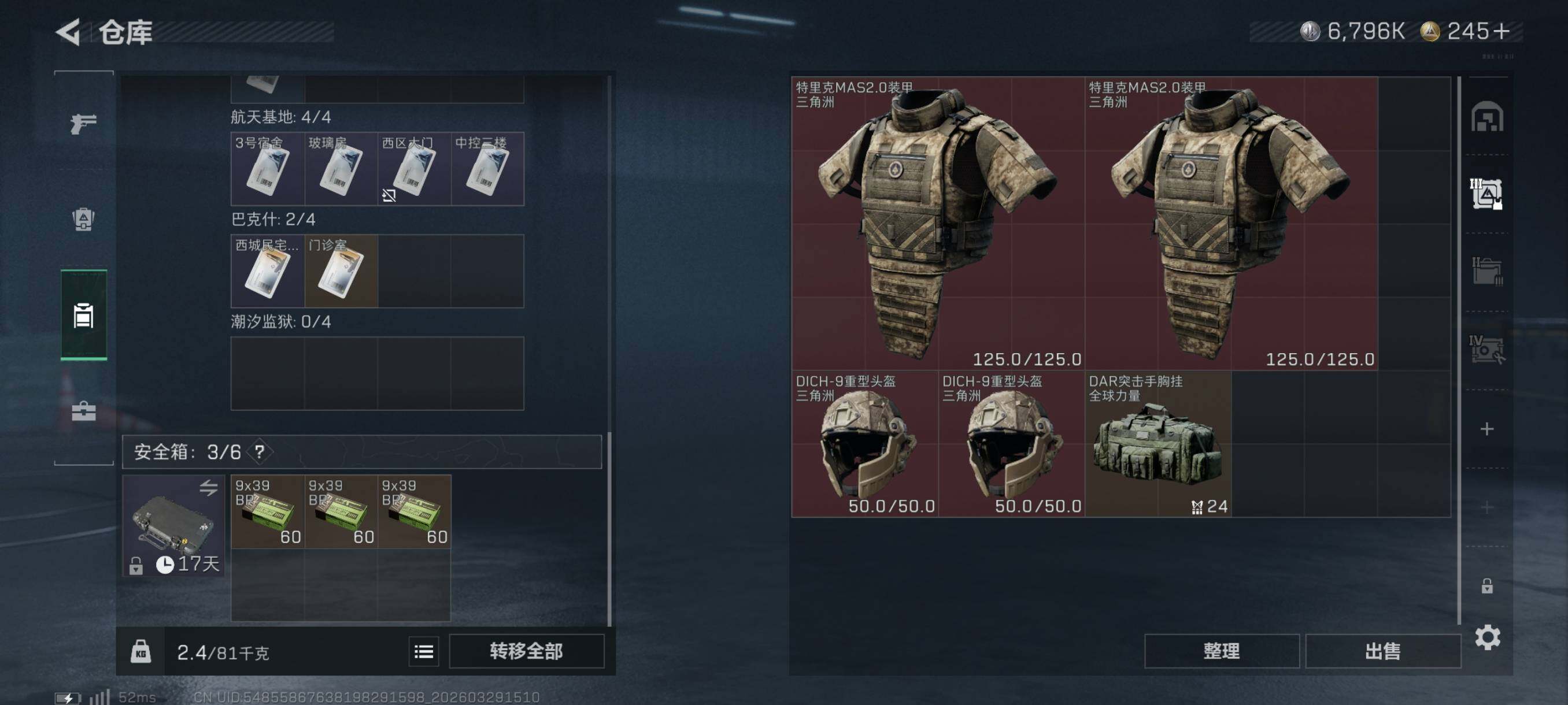 {特价出售}{可二次实名}等级:60总资产:83.6M 纯币6796K 皮肤:金牌射手,红狼惊魂,荒原猎手,不破誓约 刀皮: 信条 特勤处:仓库6,训练6,靶场5