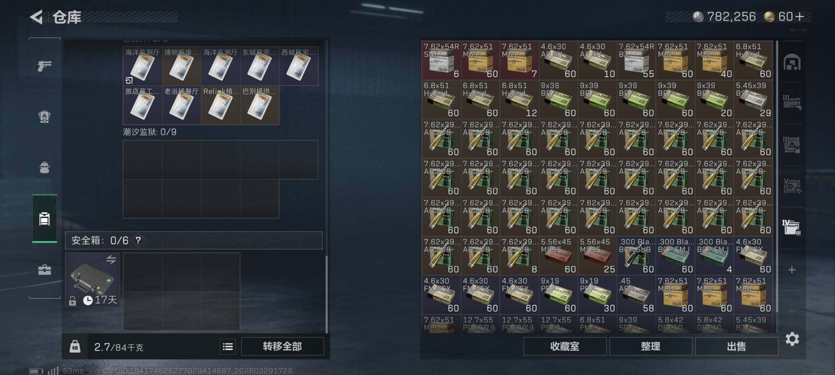 {特价出售}等级:60总资产:156.4M 纯币782256 战令皮 金牌射手 刀皮 信条 特勤处:仓库8,训练7,靶场6