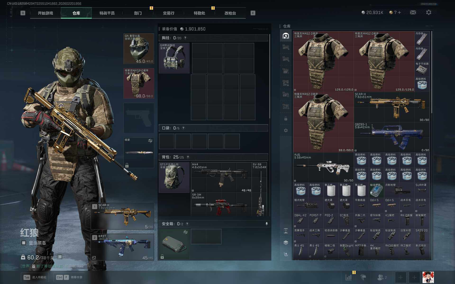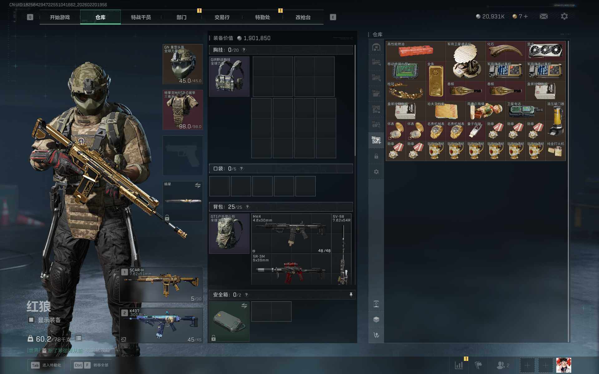 【SJZF5884】总资产(M):125M/哈夫币(K):20931K/哈夫币