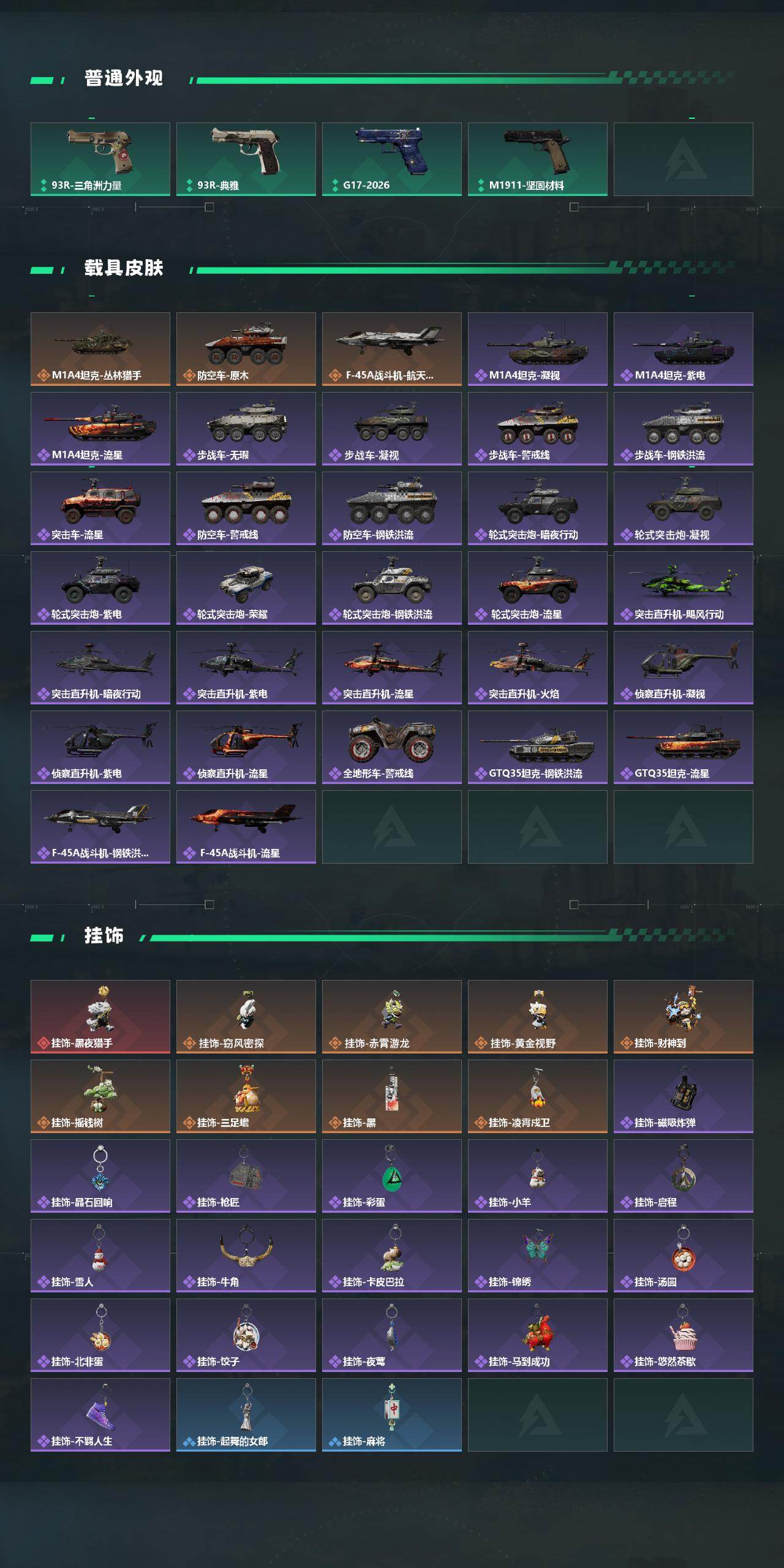 【传说外观】:AKM突击步枪-动力风潮,AKM突击步枪-锦绣,QBZ95-1突击步枪-凌霄戍卫,K416突击步枪-行动
