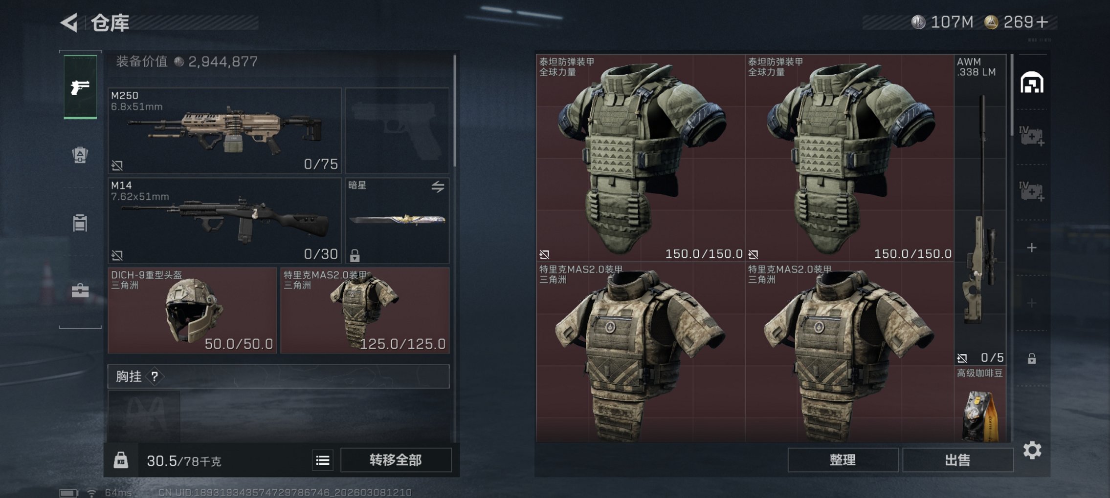 【暗星 S8赛季顶级安全箱 60颗AW子弹 总资产157M,哈夫币107,75