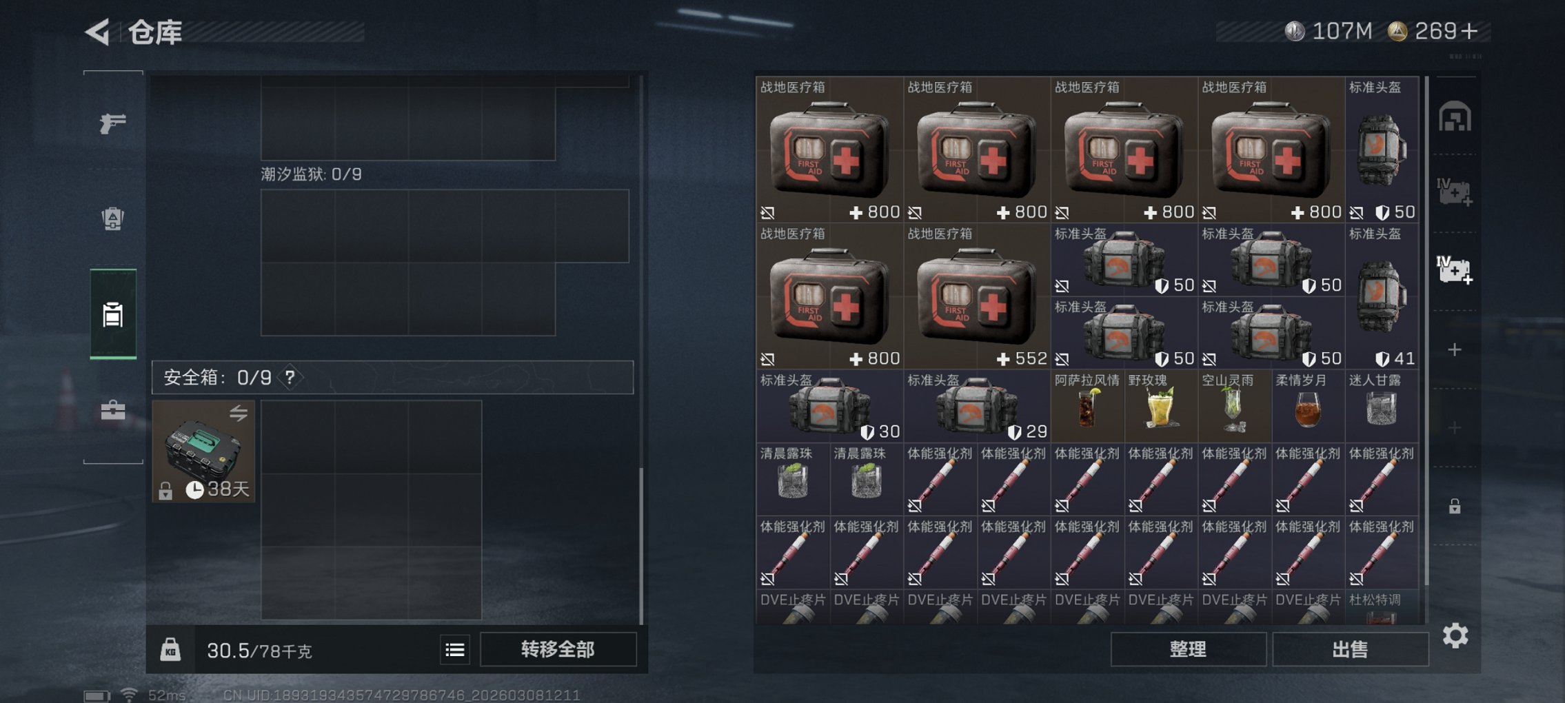【暗星 S8赛季顶级安全箱 60颗AW子弹 总资产157M,哈夫币107,750K,行动等级:60,近战数量:1,仓库等级:5级,训练中心等级:4级,靶场等级:4级,枪皮:78 秒换绑不用等】