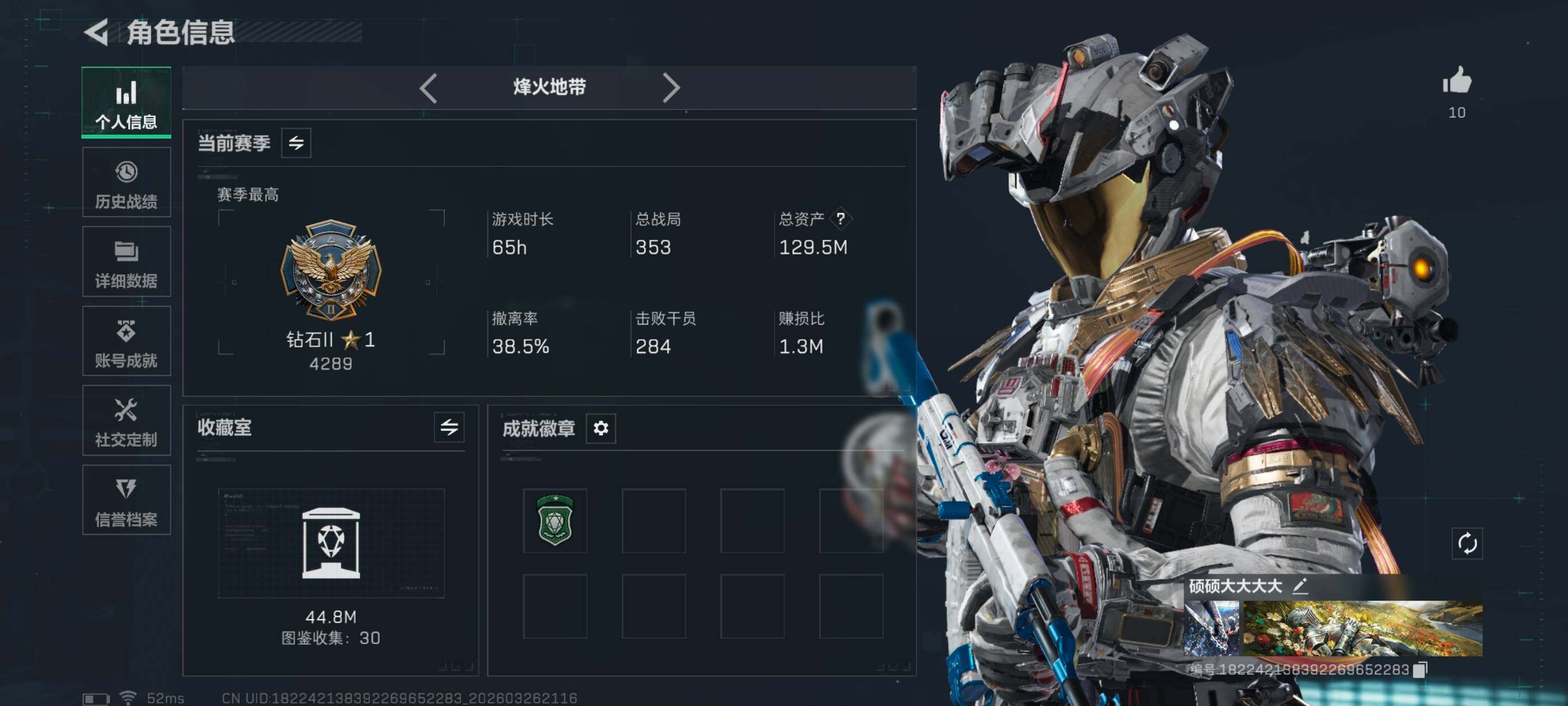 {特价出售}等级:60总资产:130.2M 纯币 1228k 红皮:凌霄戍卫 刀皮 信条 特勤处:仓库7,训练7,靶场6
