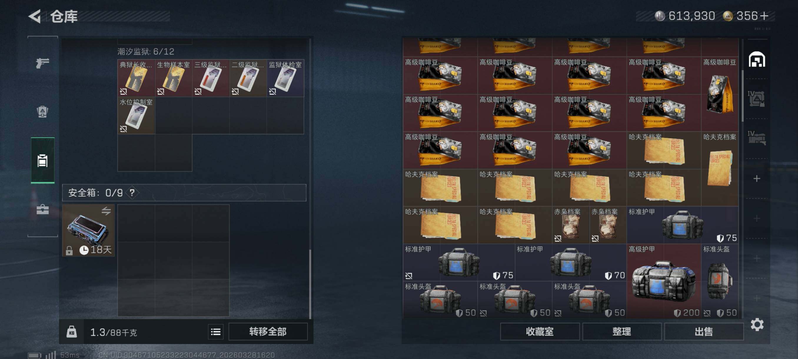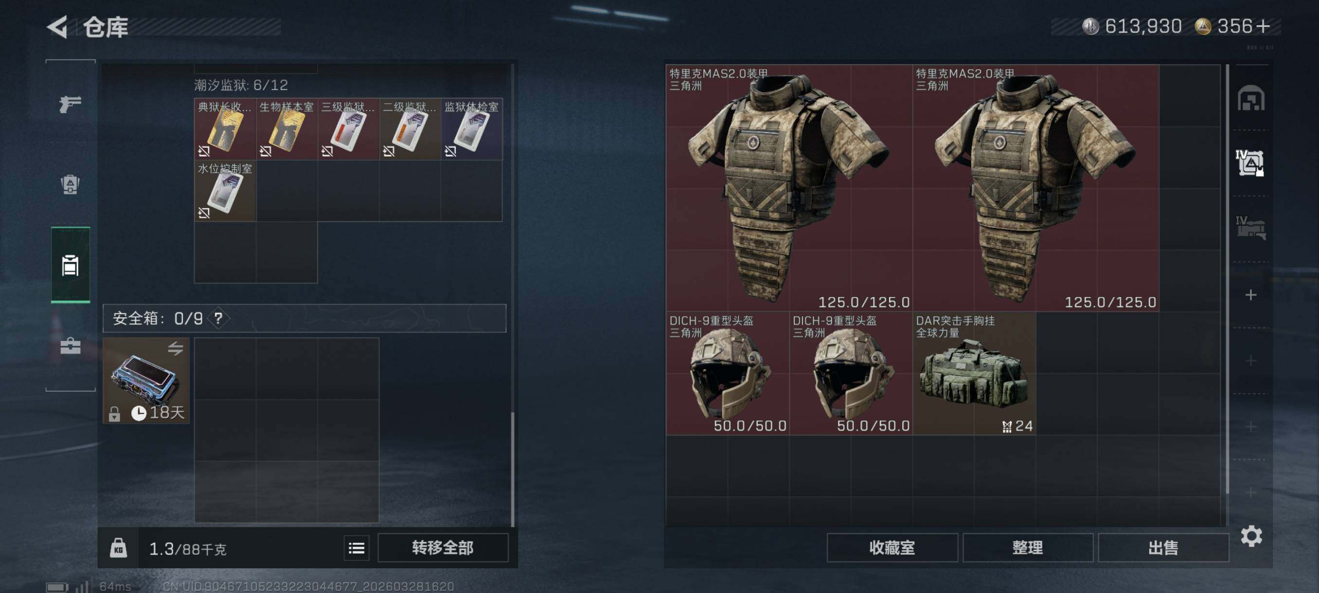 {特价出售}等级:60总资产122.5m 纯币613930 人物皮 水墨 骇爪联动 刀皮 信条 特勤仓库8级 体力负重·满级