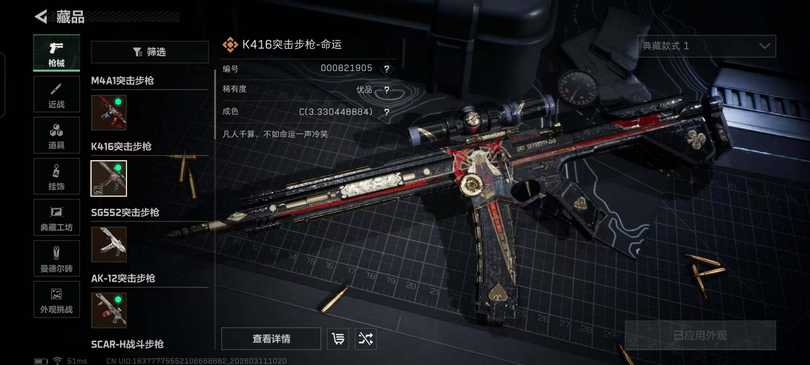 【典藏外观成色】:K416突击步枪-命运(优品C)