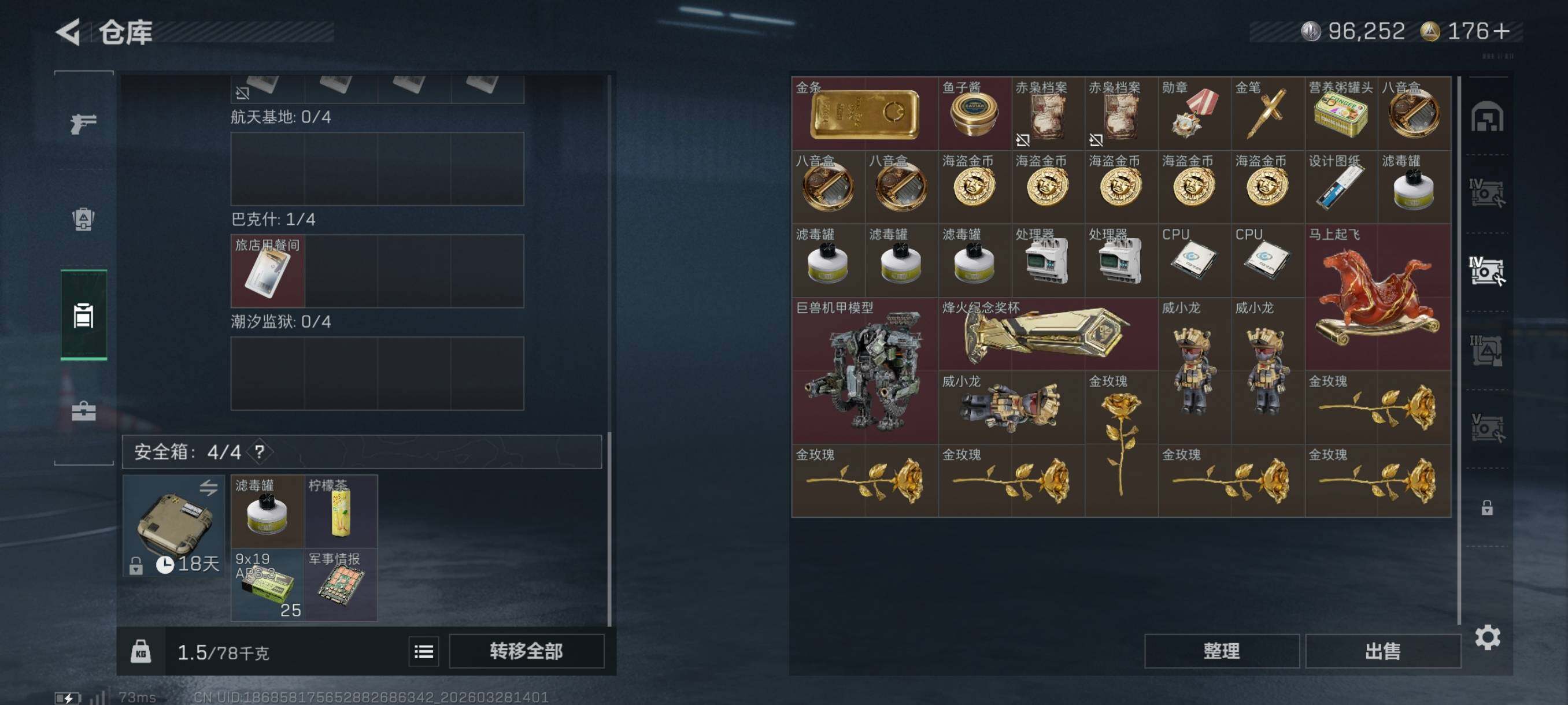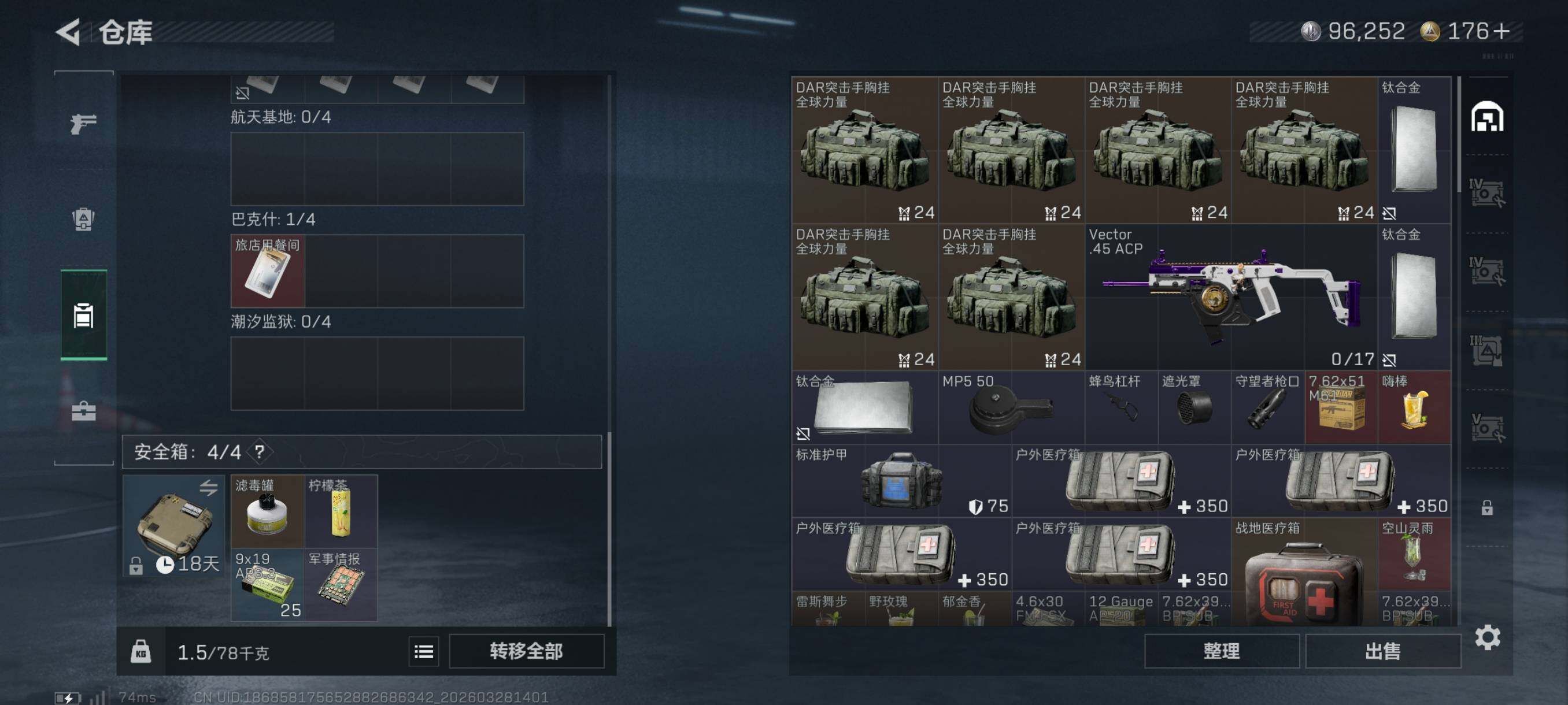 {特价出售}等级:60总资产:40.4M 纯币96252 隐藏挂饰:2S黑夜猎手 红皮:红狼-蚀金玫瑰 刀皮: 近战-暗星/近战-信条 砖皮: AS Val突击步枪-悬赏令(优品B) 特勤处:仓库5,训练4,靶场4