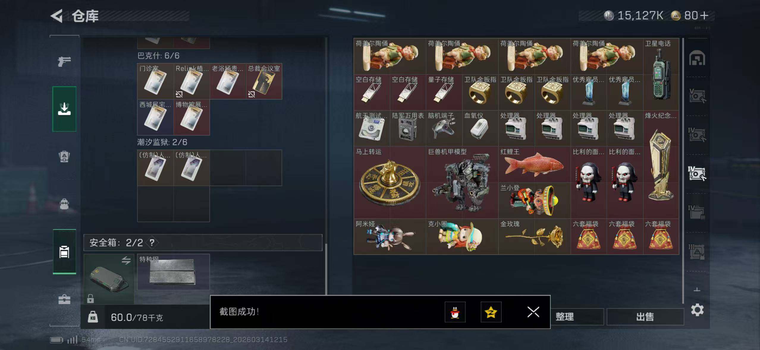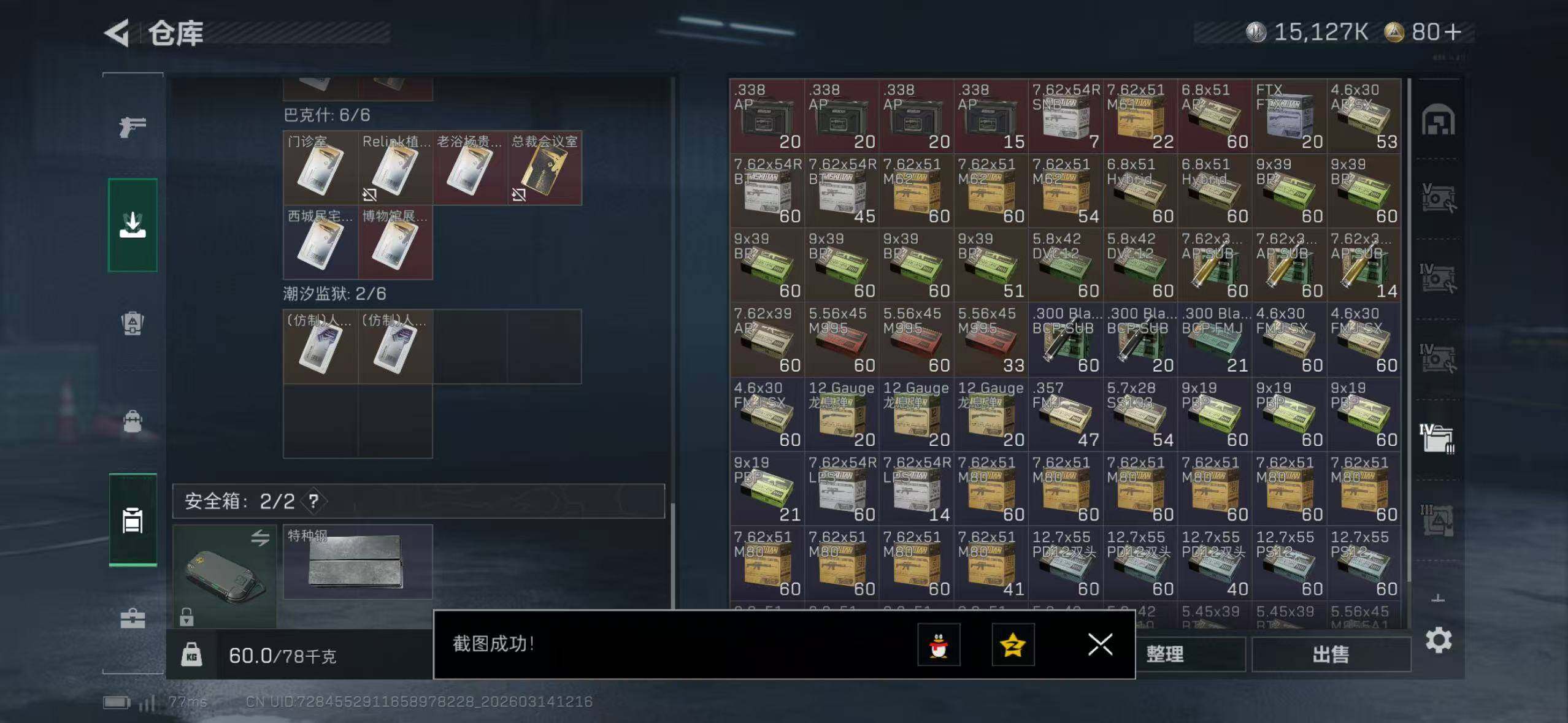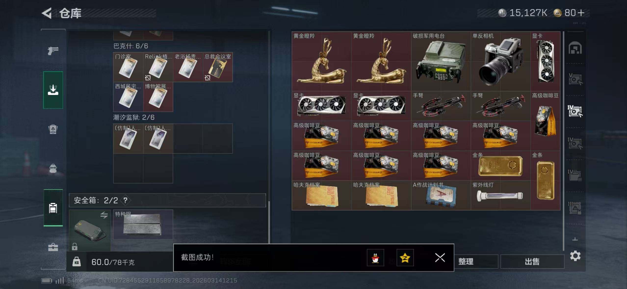 【SJ1386】254m总资产-15127k哈夫币-60烽火等级-黄金-19战场等级-列兵