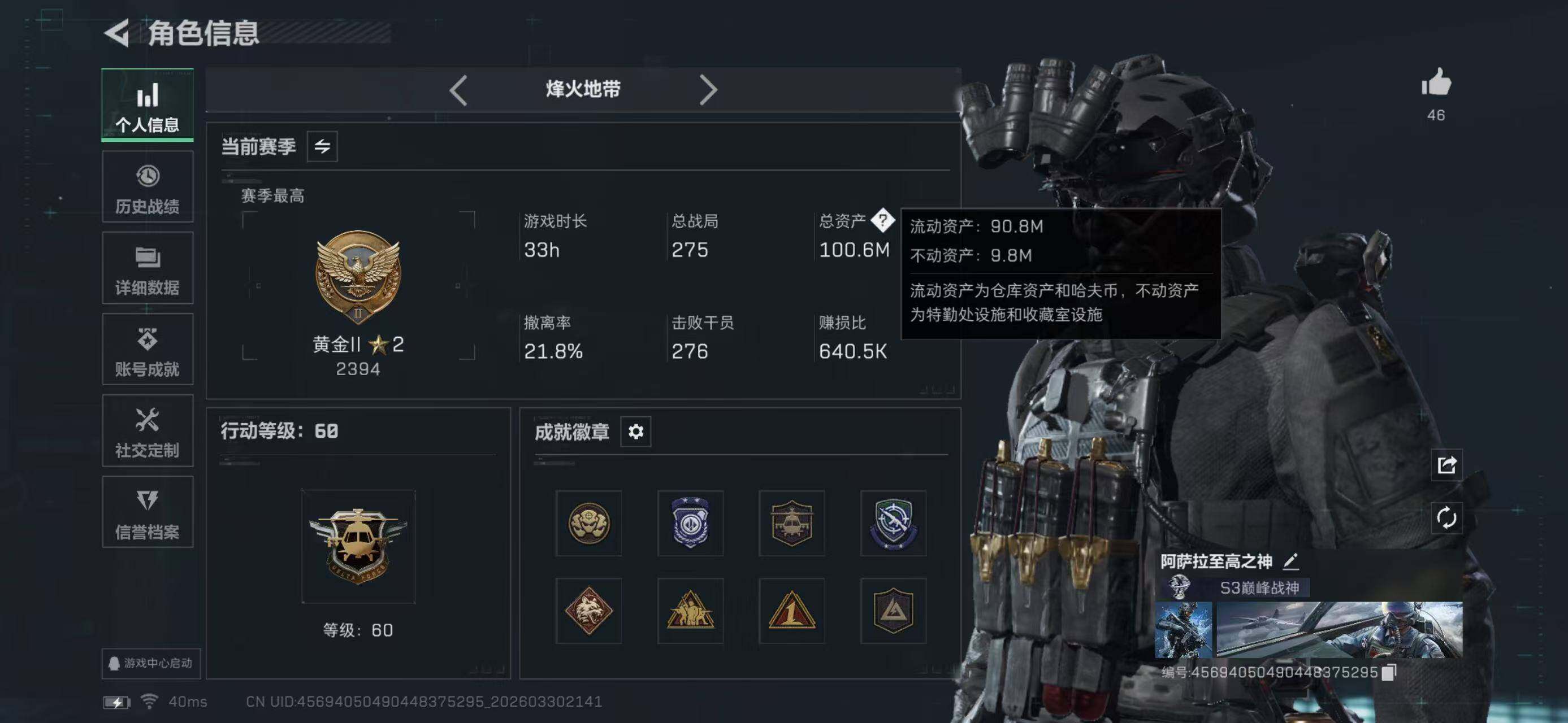 【2944】总资产(M):101M/哈夫币(K):20820K/哈夫币(K):