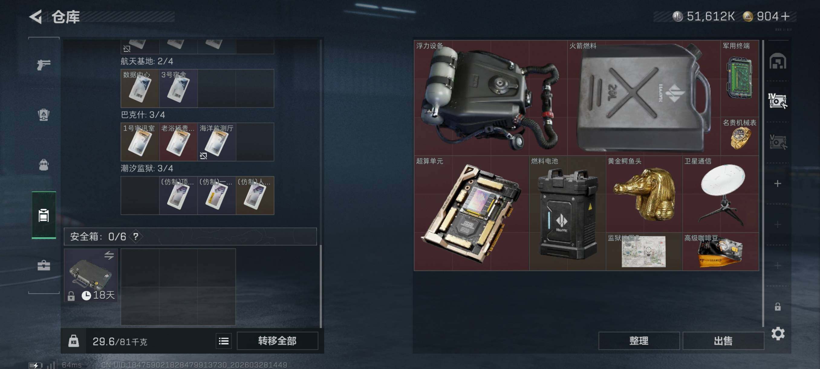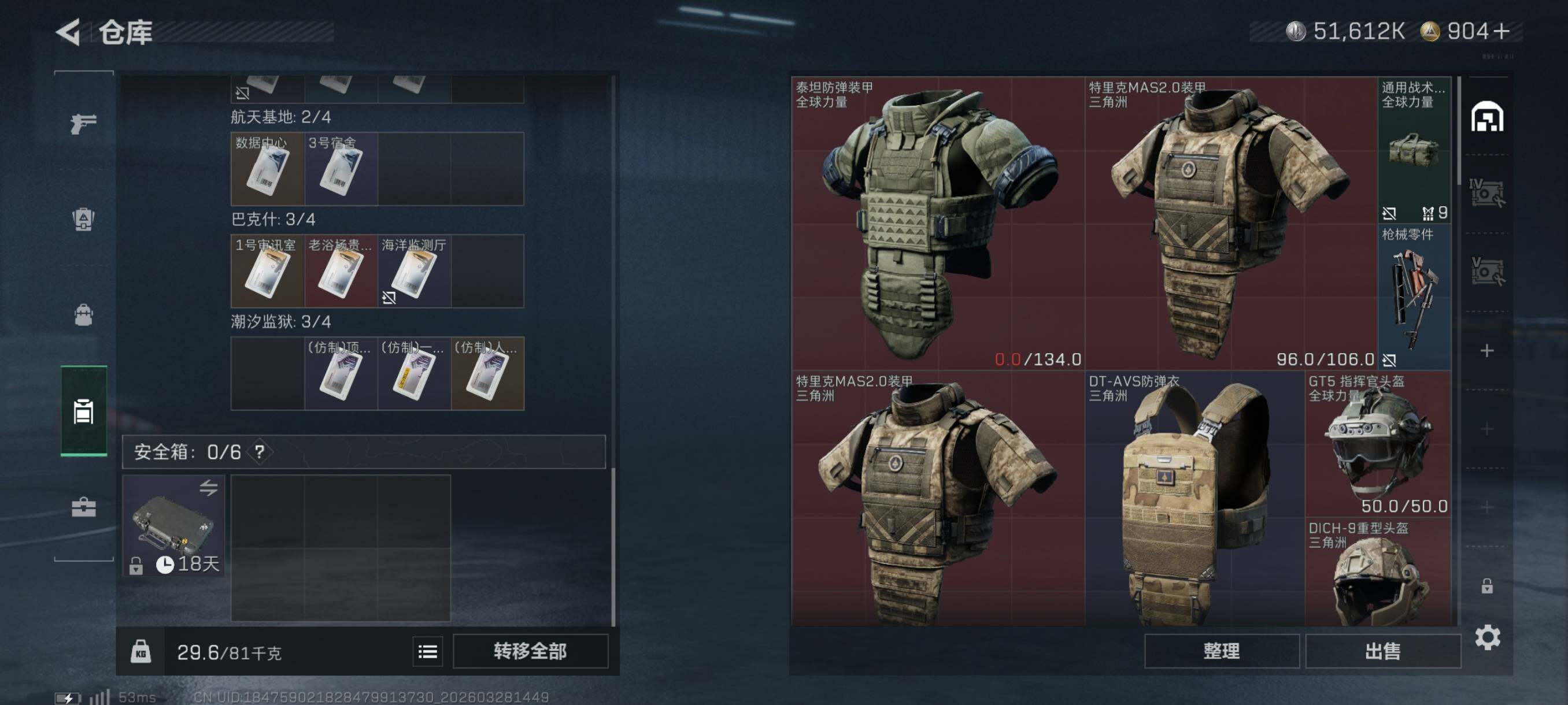 {特价出售}等级:48总资产:102.1M 纯币51612k 红皮:凌霄戍卫 刀皮 信条 砖皮: 优品a 巨浪 特勤处:仓库6,训练5,靶场5