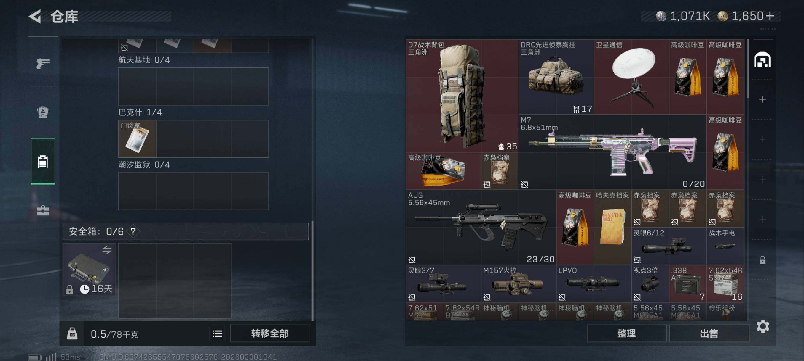 {特价出售}《S8通行证》等级:60总资产:17.6M 纯币1071K 红皮:威龙-凌霄戍卫 刀皮: 近战-暗星/近战-龙牙 砖皮:M7战斗步枪-棱镜攻势S2(优品B) 特勤处:仓库5,训练6,靶场4