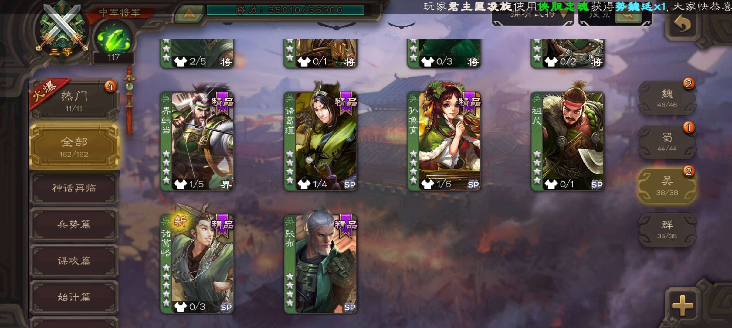 中军将军,4.9万豆,真动态界左慈真动态戏志才王粲公孙康沮授金皮程昱6史诗,动界刘备关银屏162将
