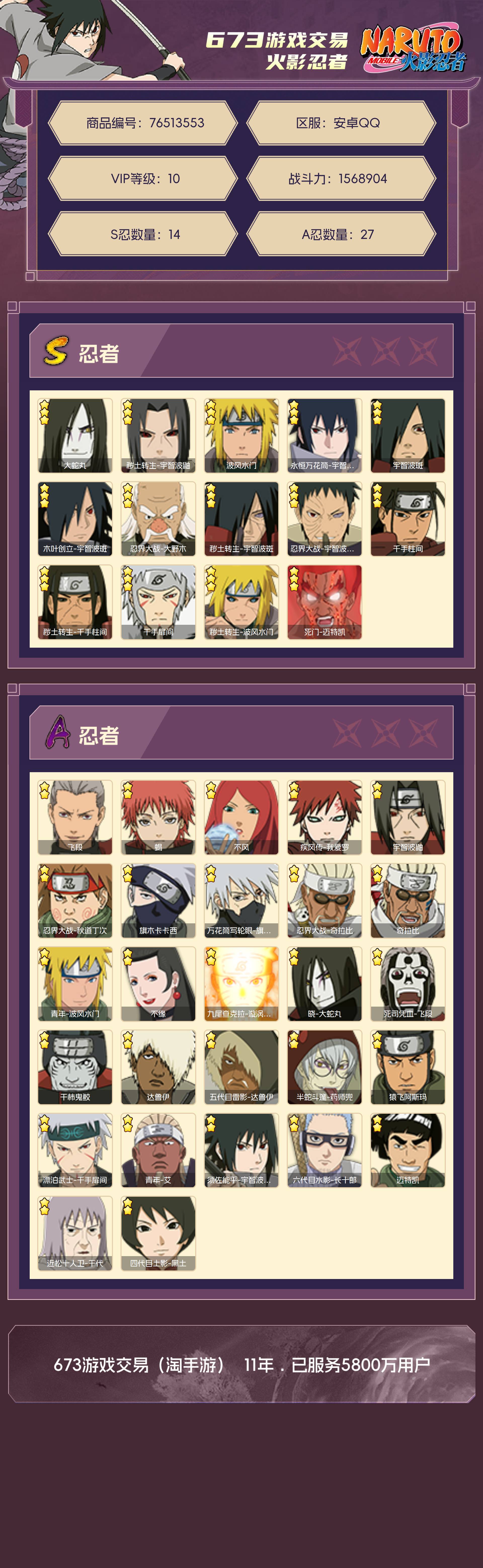 角色等级145 金币1600 战斗力1568904 S忍14 A忍27 5星S忍者11 10 段位见习