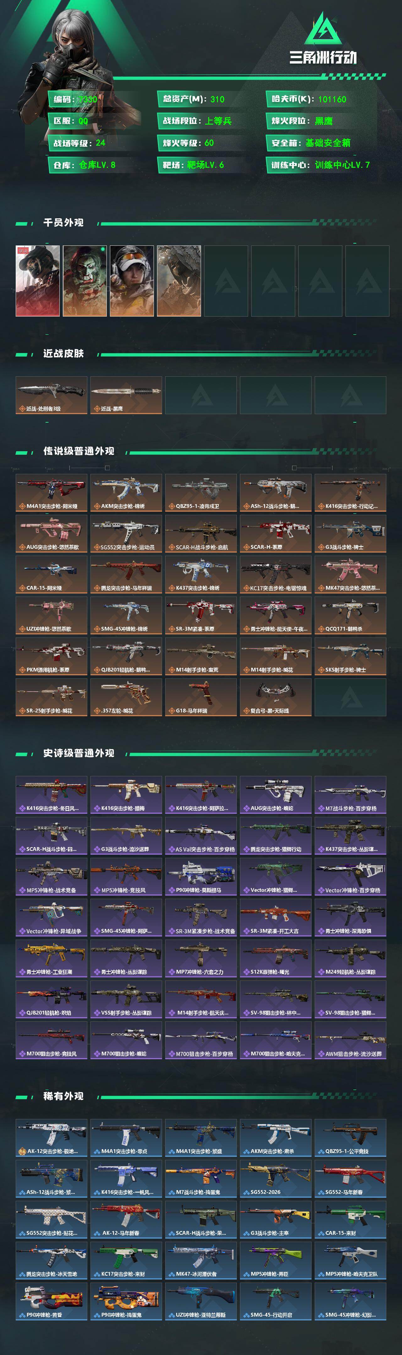 {特价出售}等级:60总资产:310.8m 纯币 101m 红皮 :天际线 特勤处:仓库8,训练7,靶场6