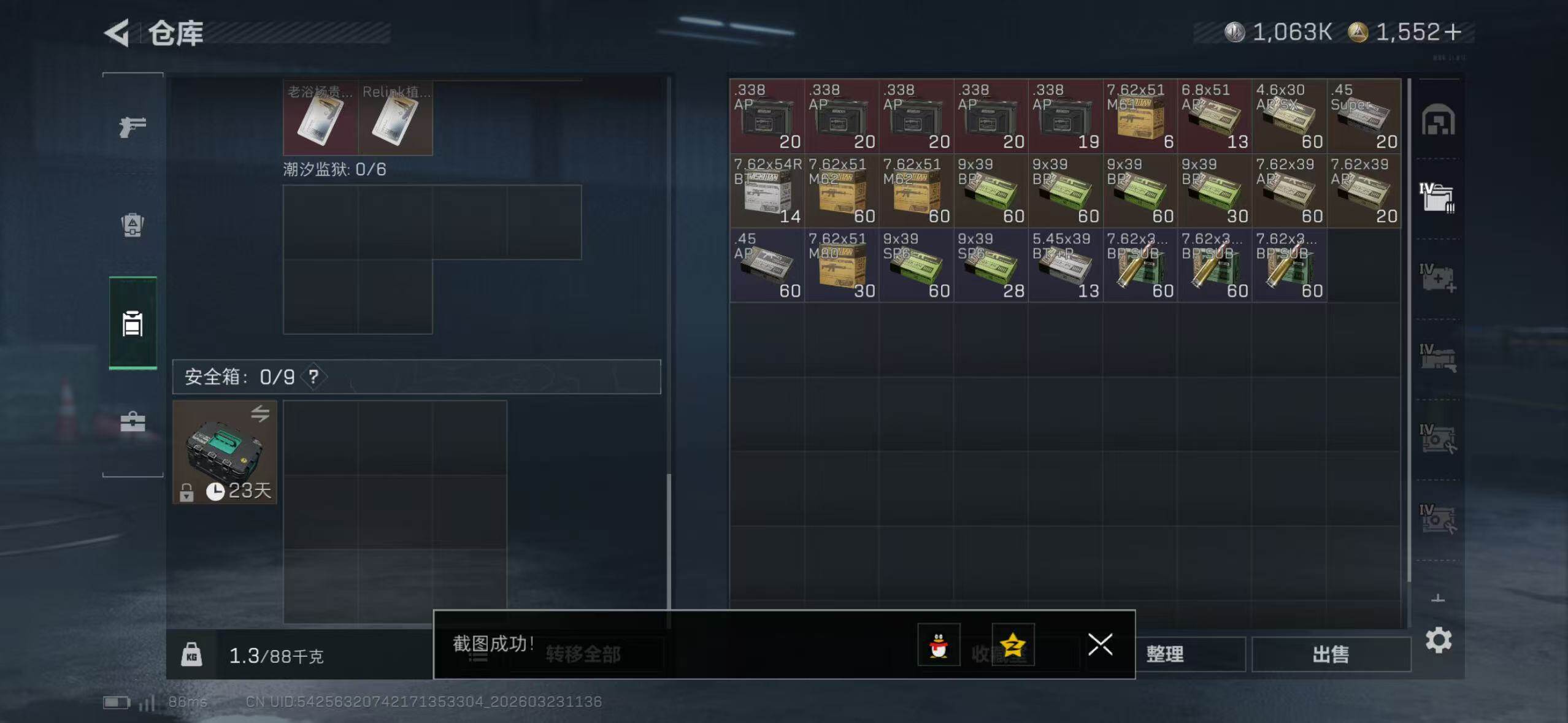 【SJ1513】98m总资产-1063k哈夫币-60烽火等级-钻石-21战场等