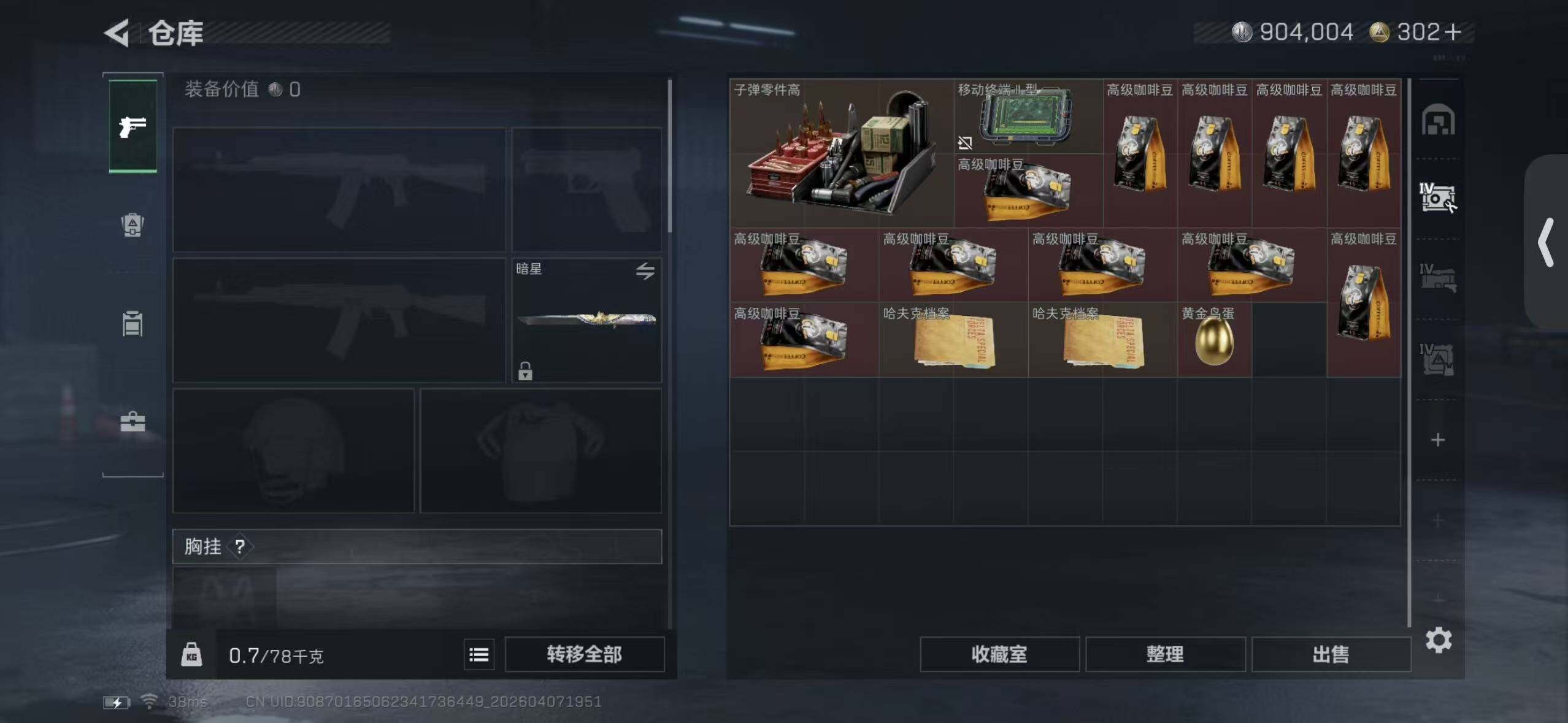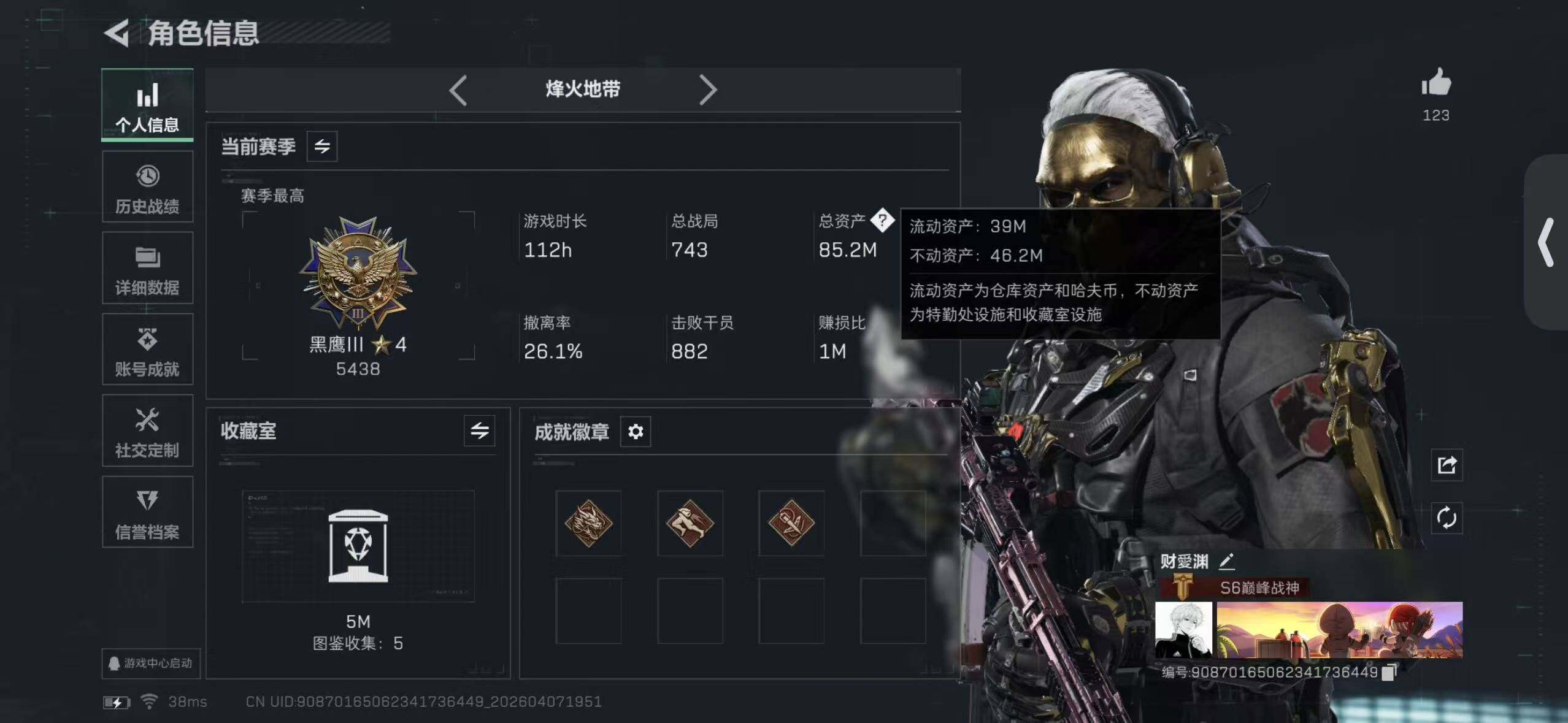 【SJC2078】总资产(M):85M/哈夫币(K):904K/哈夫币(K):