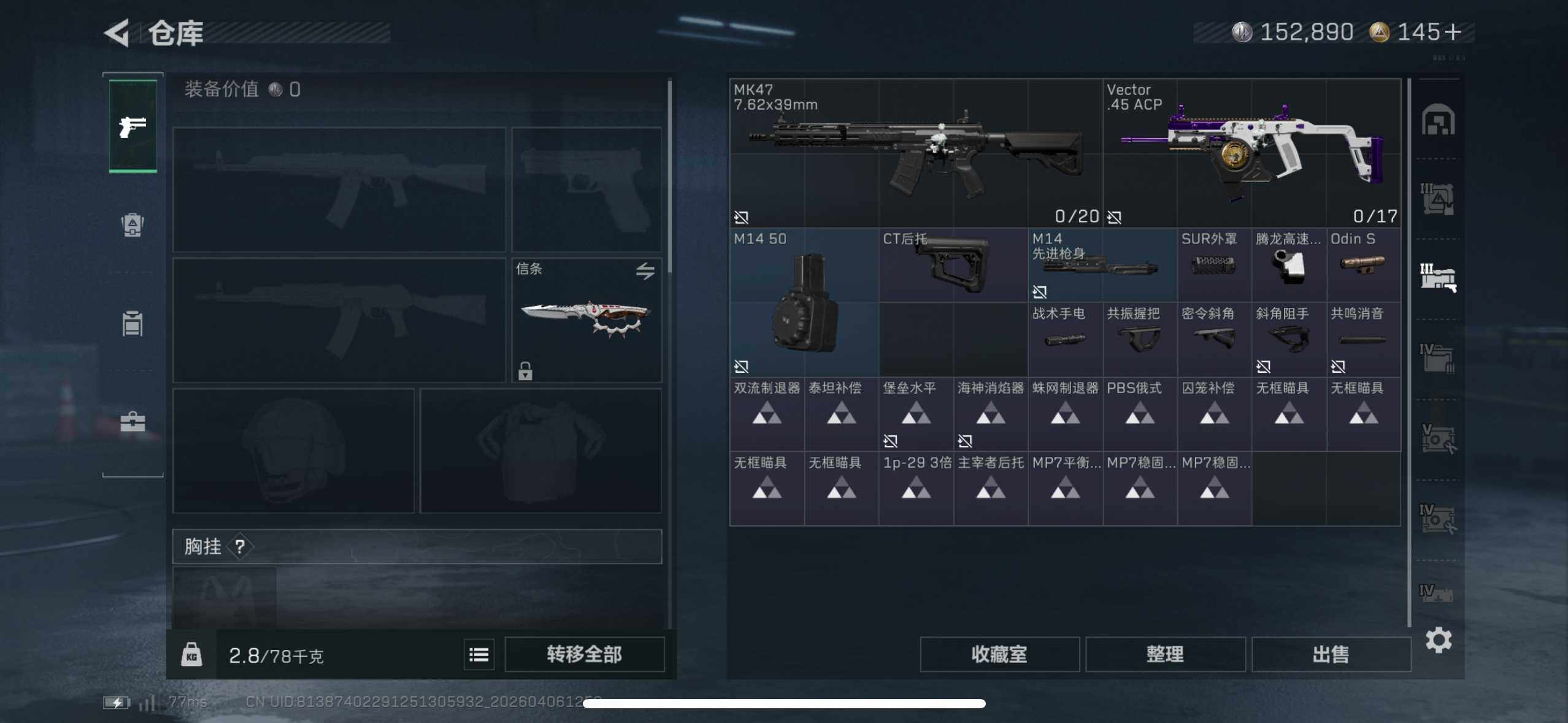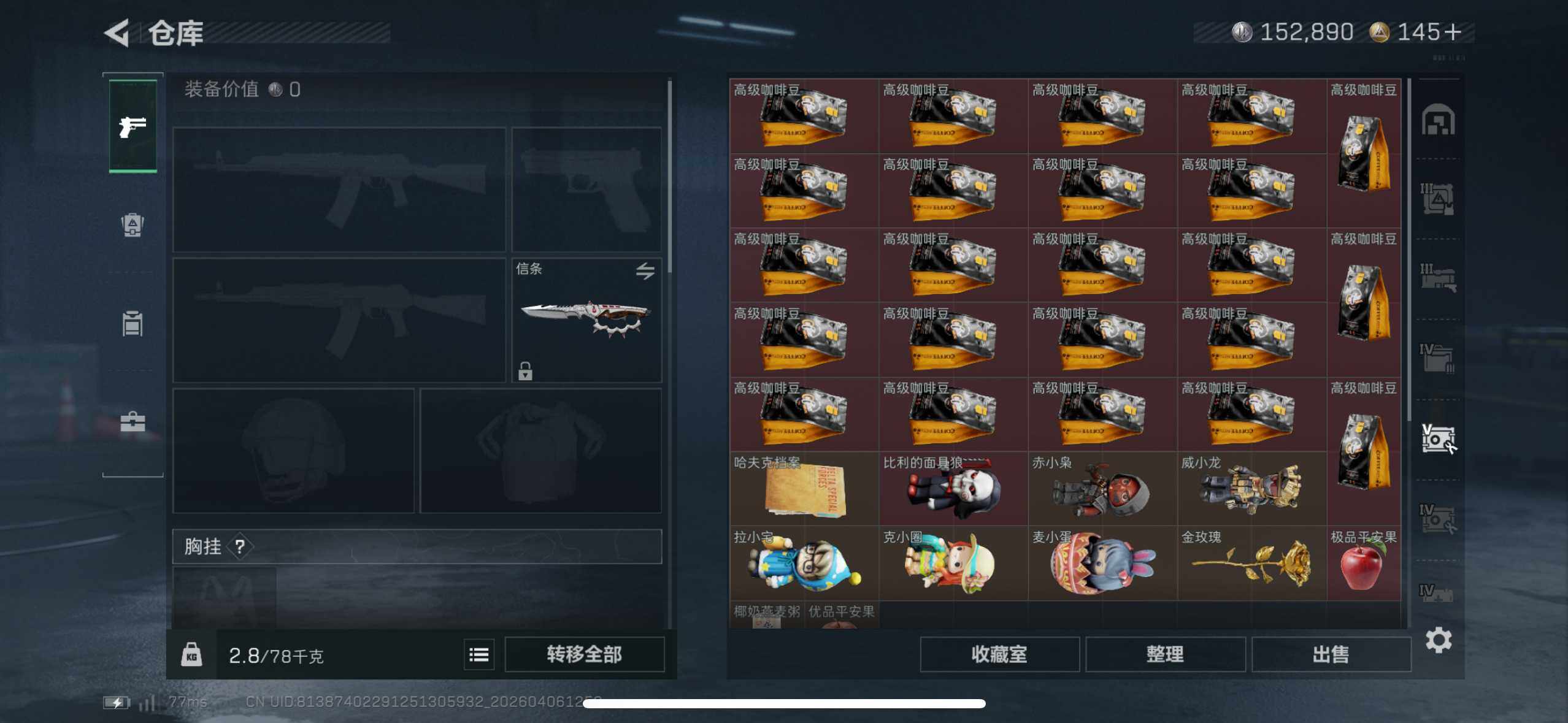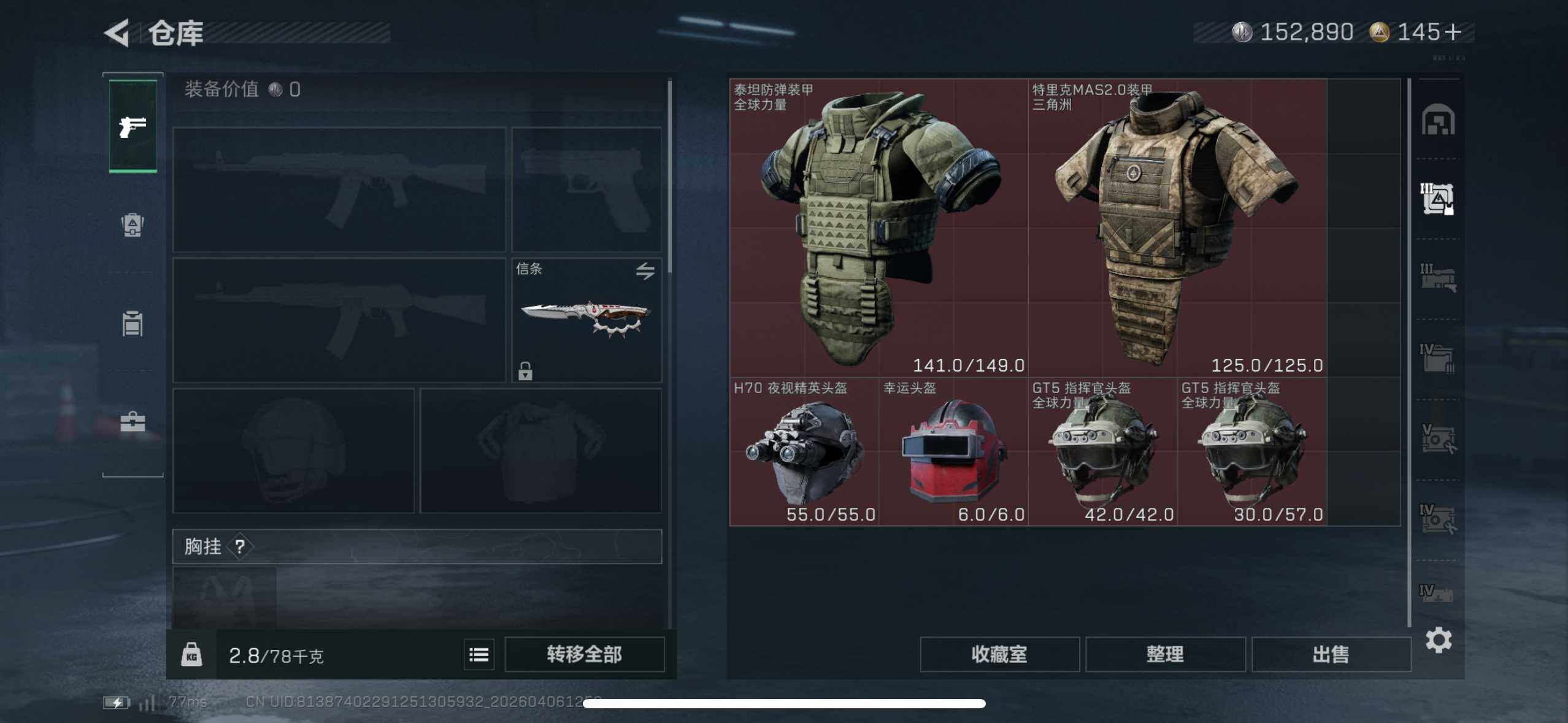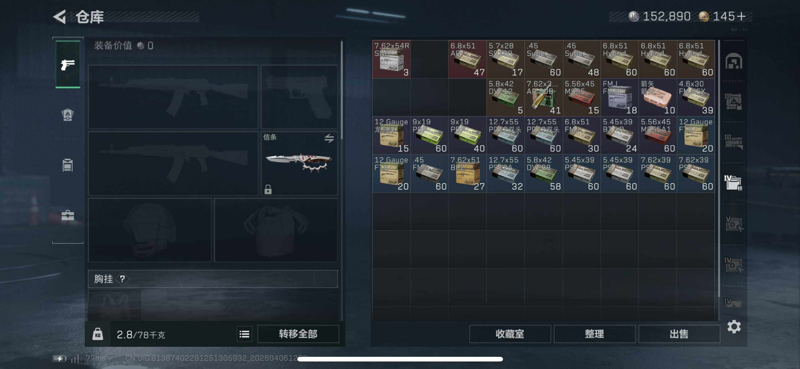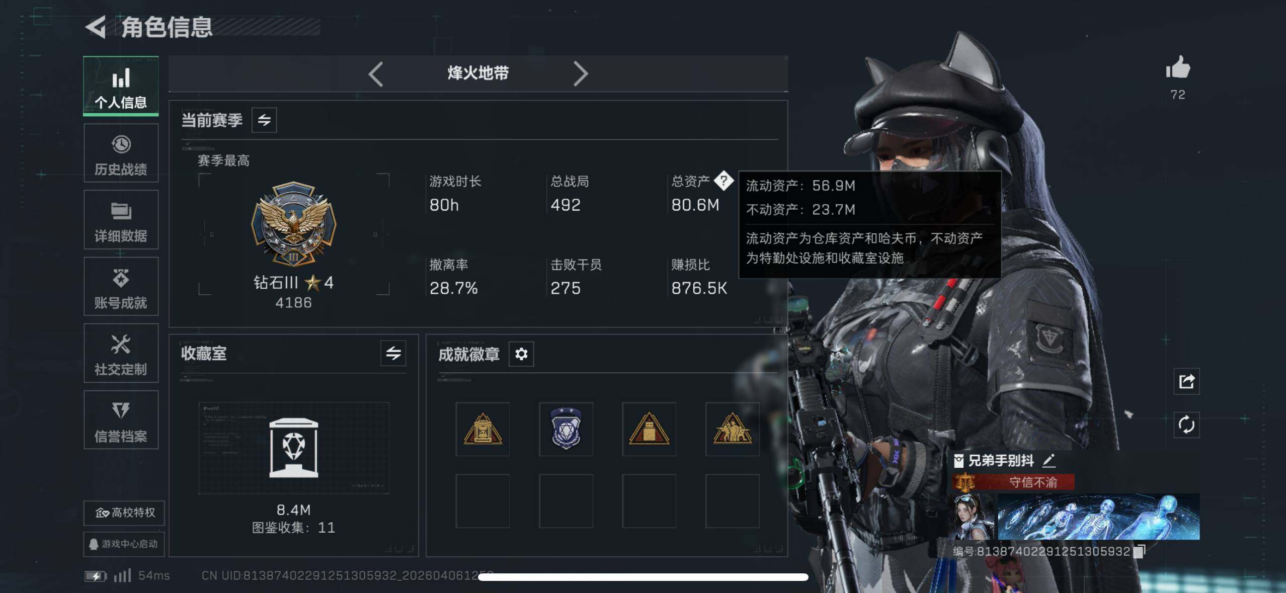 【SJZQH1662】总资产(M):80M/哈夫币(K):152K/哈夫币(K