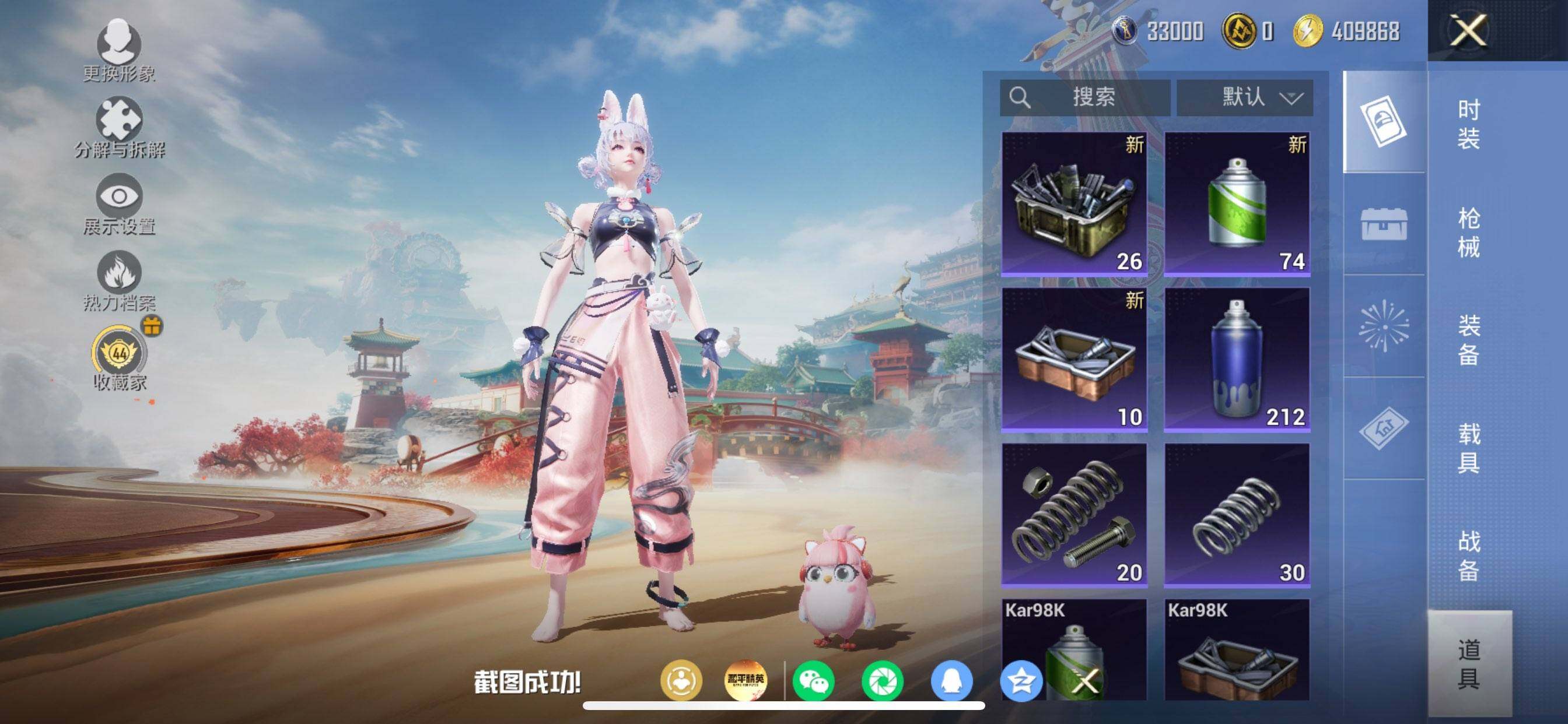 苹果 手Q-3粉装-3特效枪-0载具-0粉色飞行器-29486热力值-8王牌印记-66套装-98枪皮