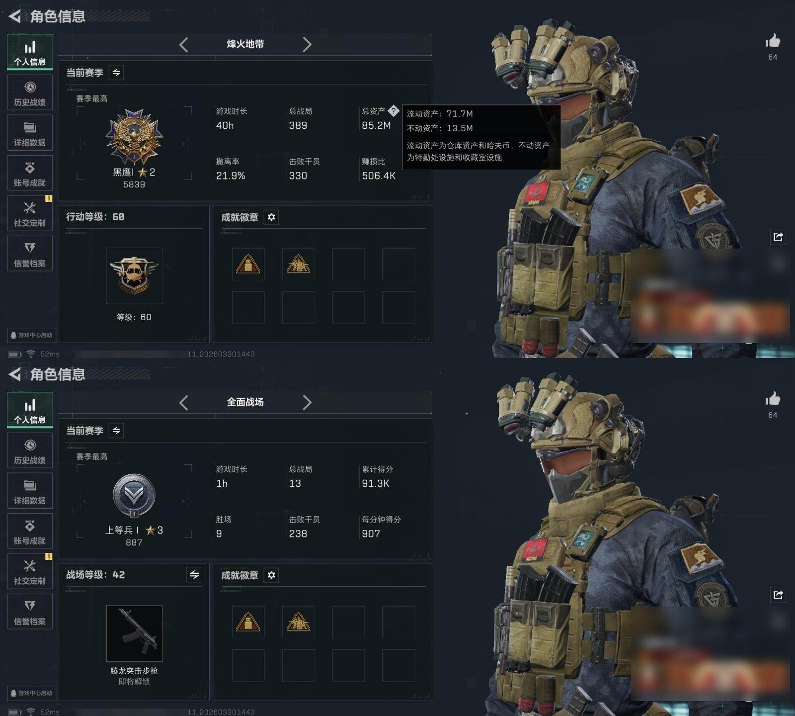 【2919】总资产(M):85M/哈夫币(K):34387K/哈夫币(K):3