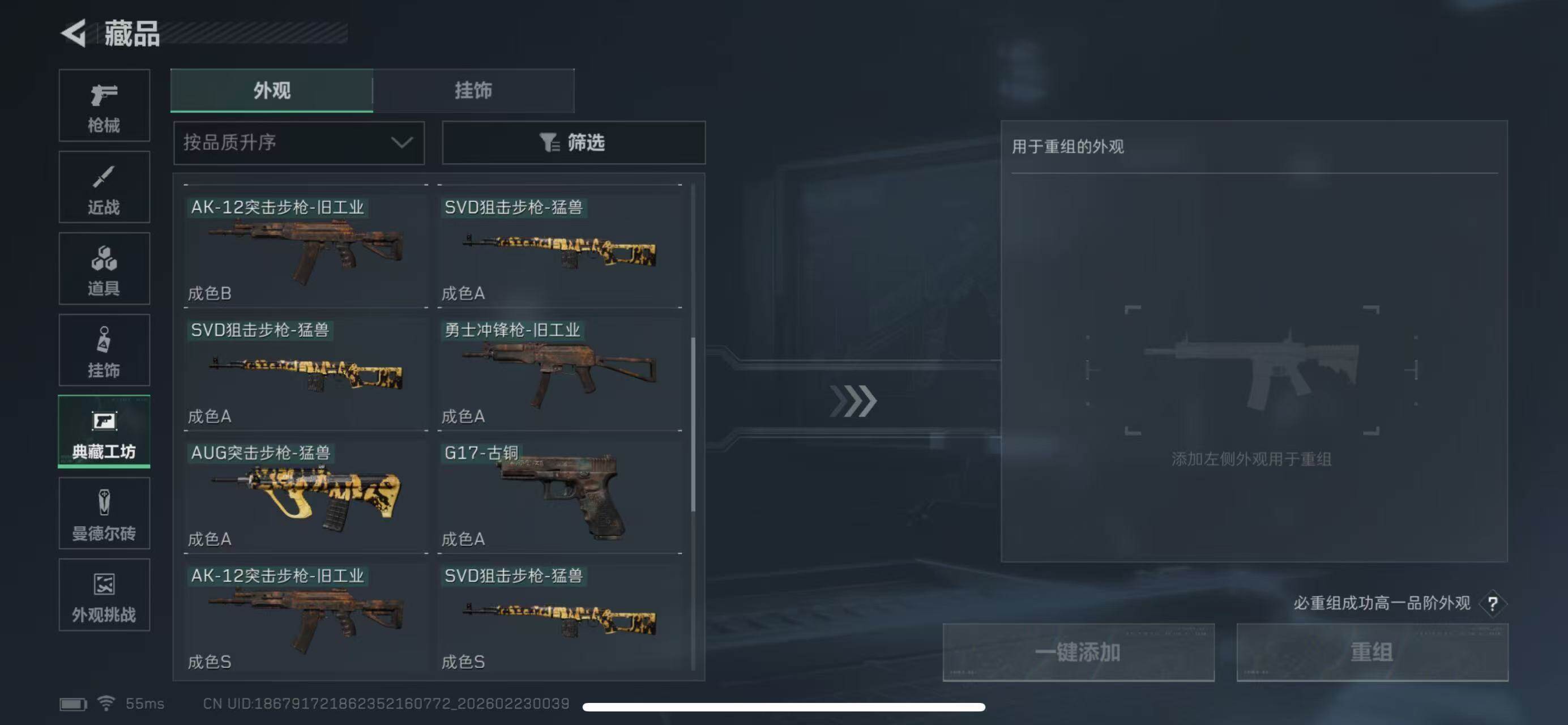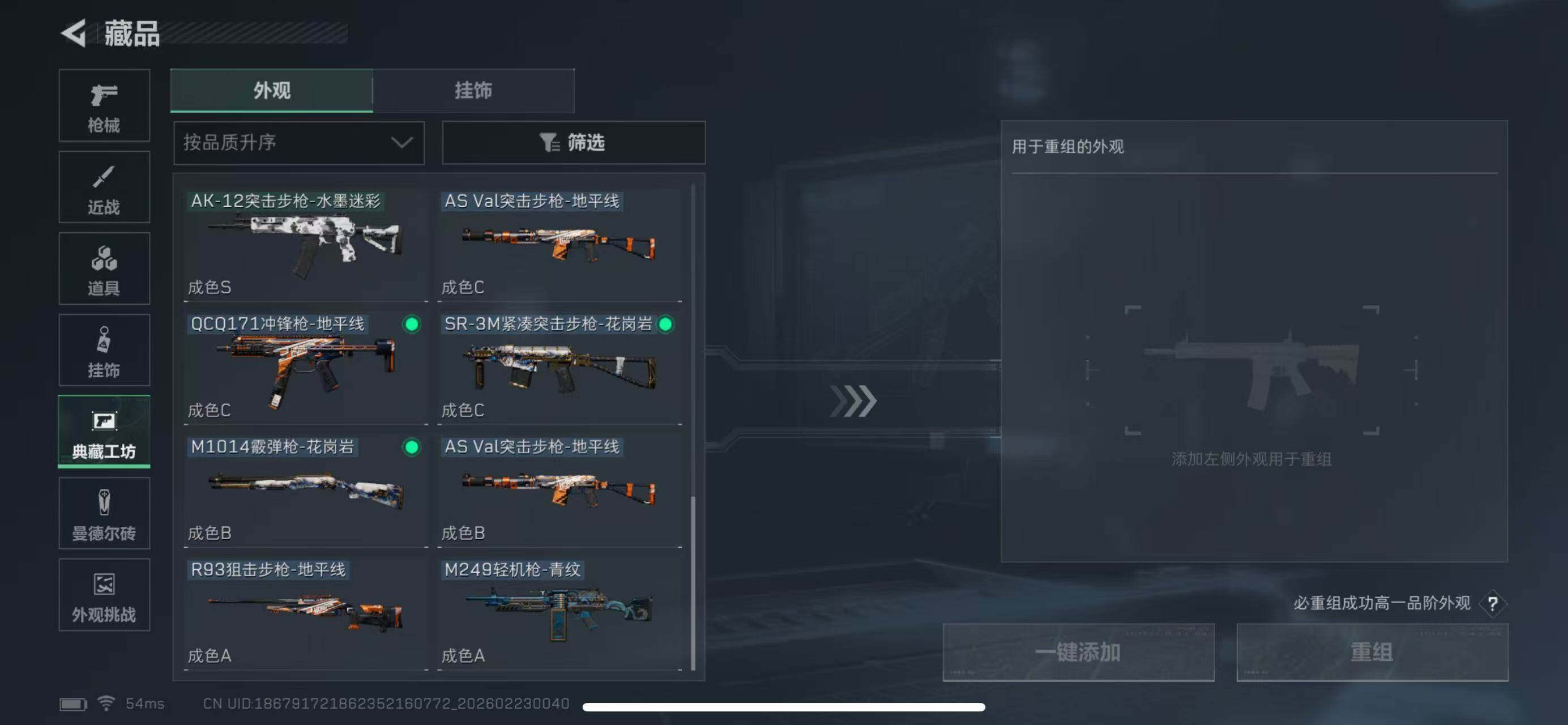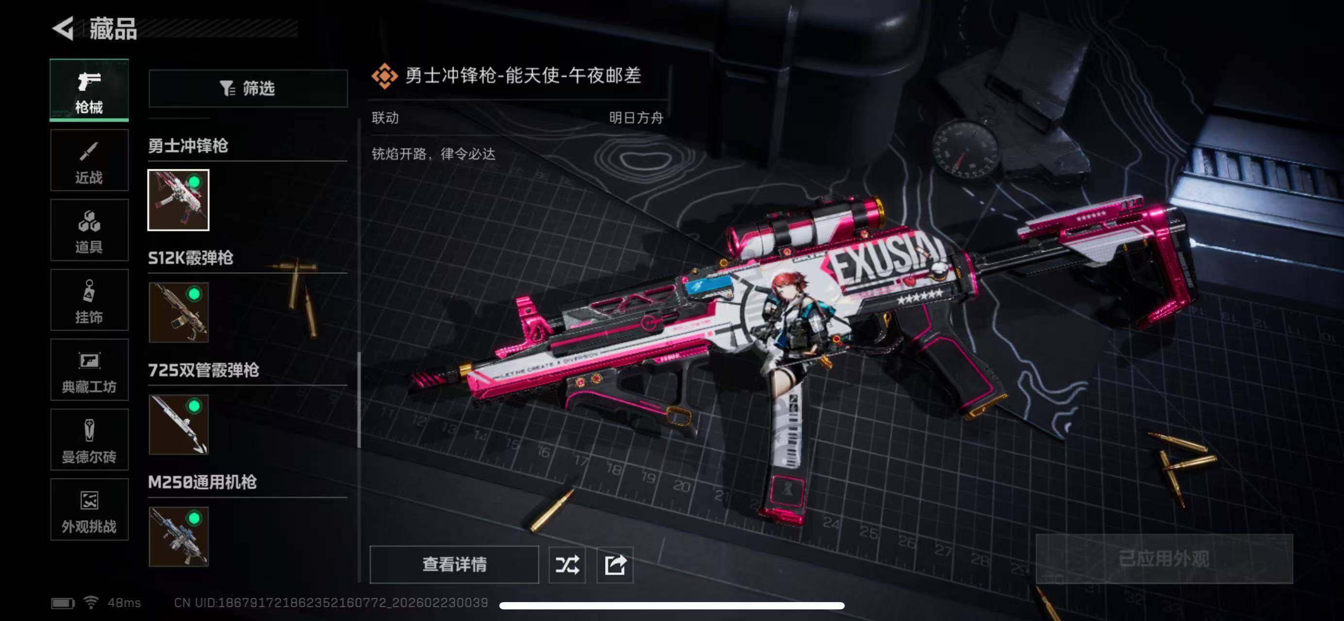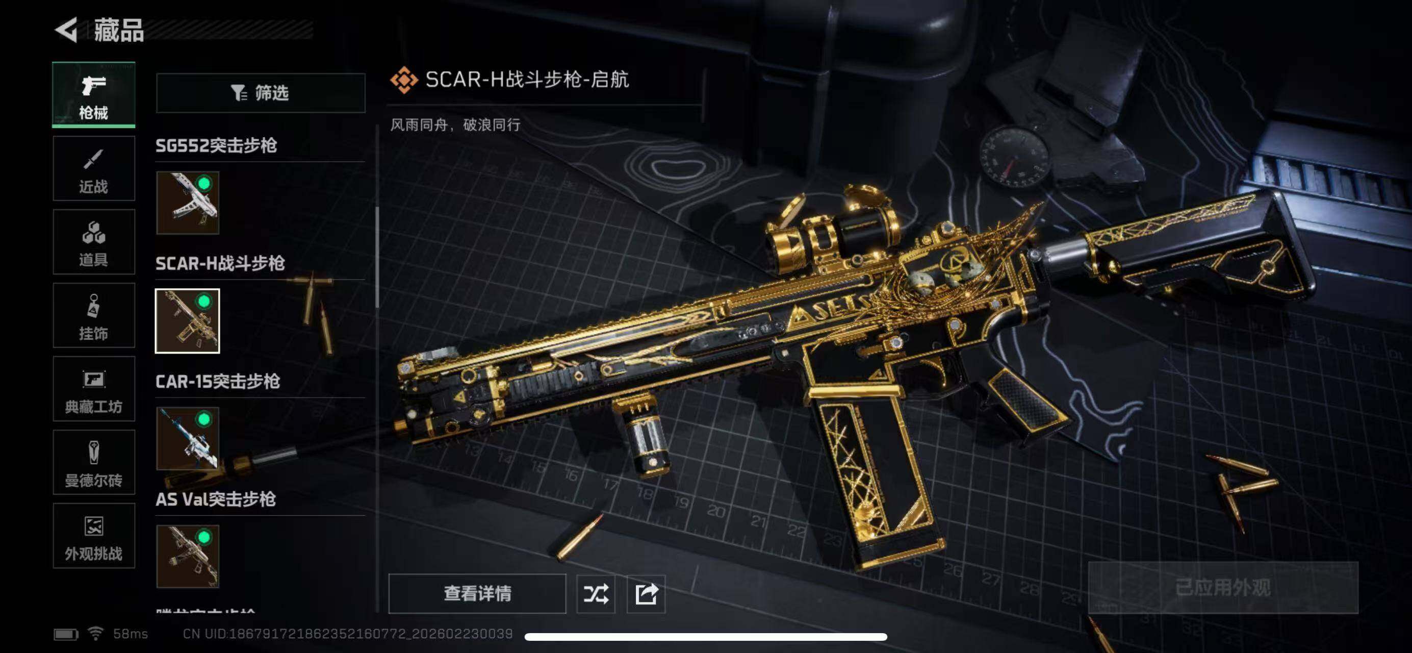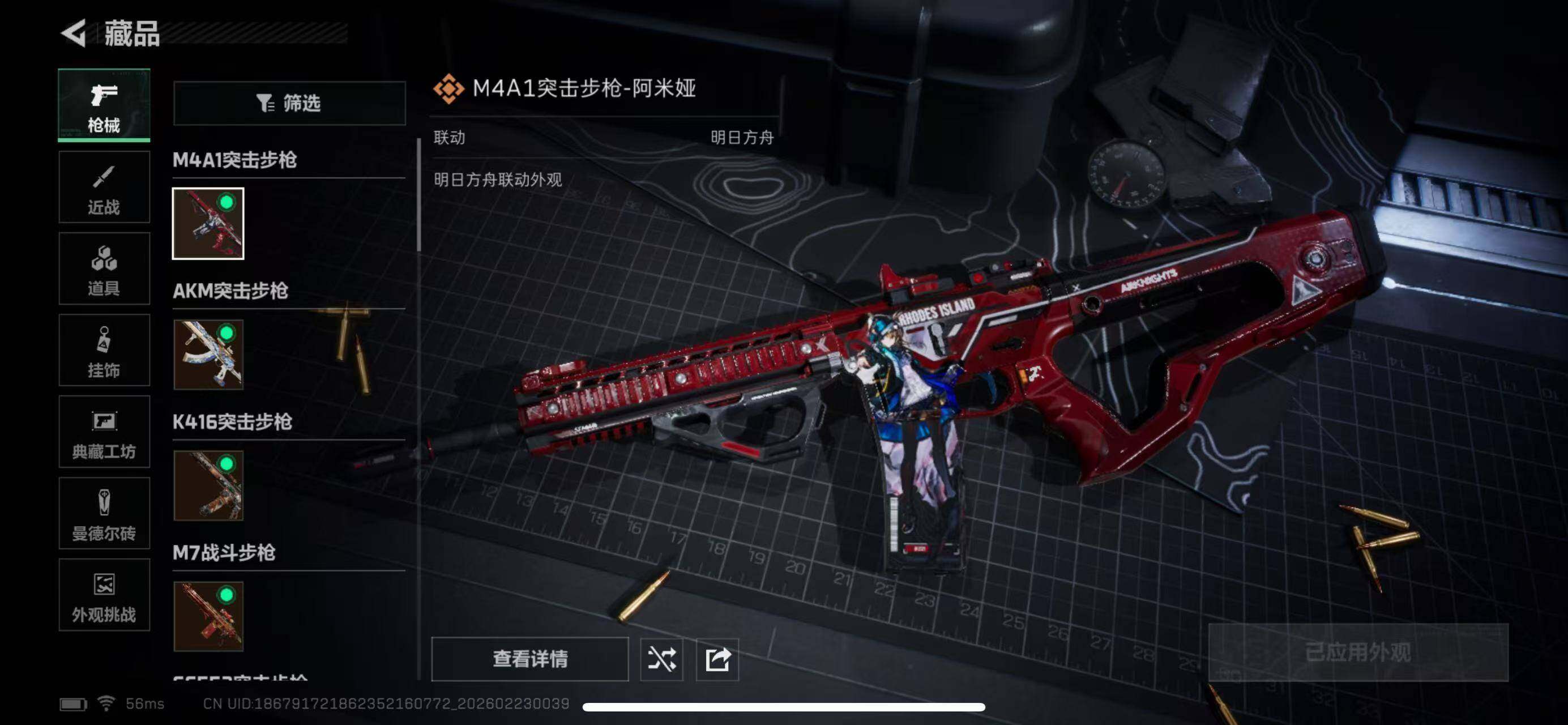 【传说外观】:M4A1突击步枪-阿米娅,AKM突击步枪-锦绣,K416突击步枪-行动记录,M7战斗步枪-巳蛇,SG552突击步枪-运动员,SCAR-H战斗步枪-启航,CAR-