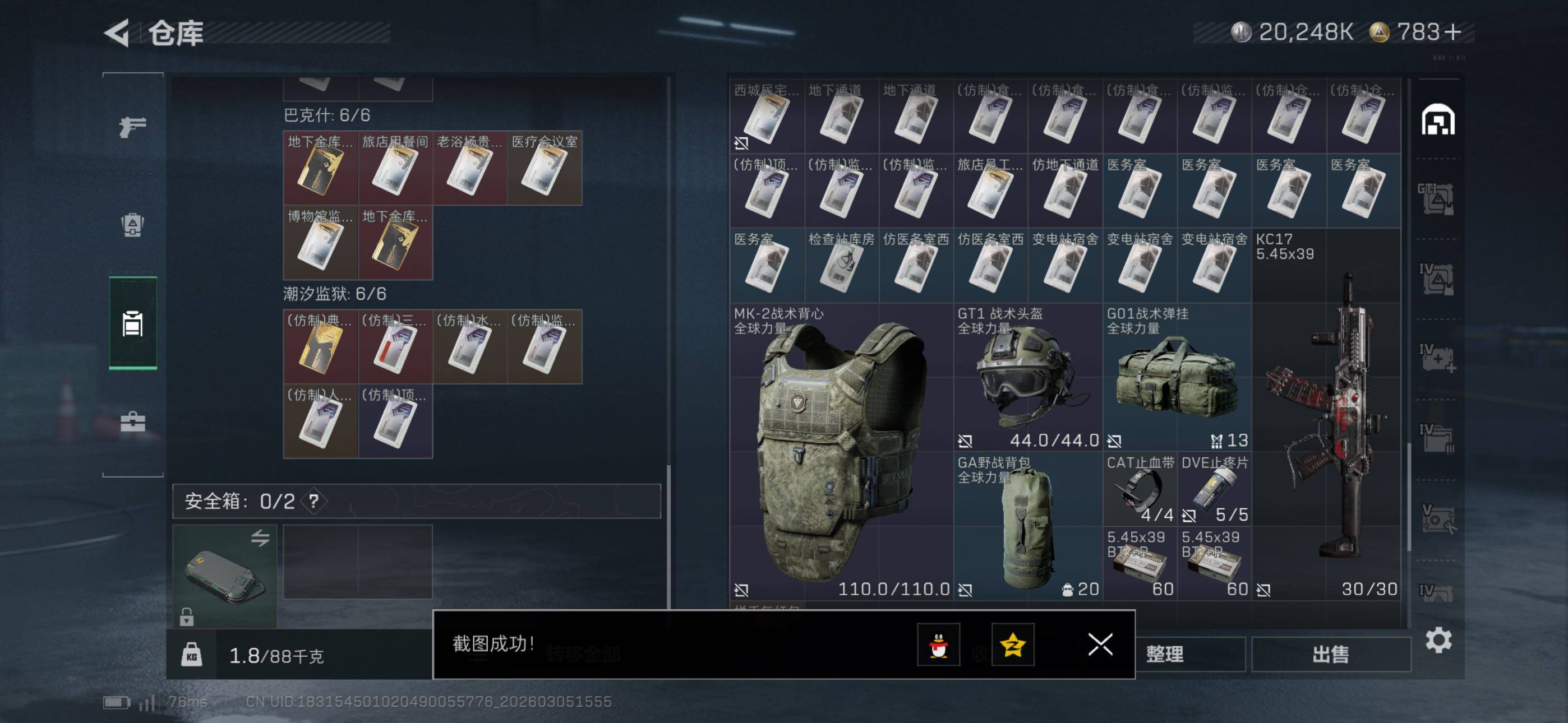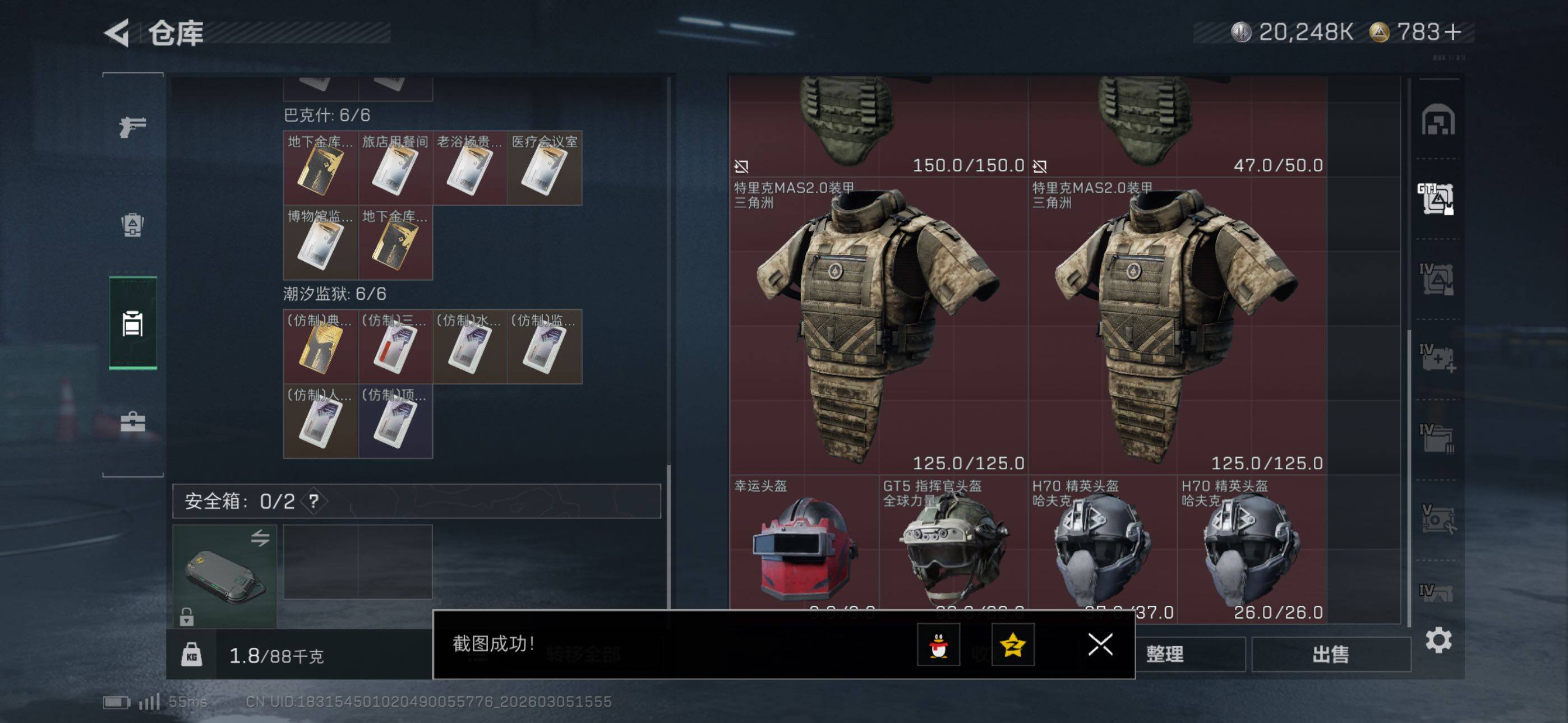 {特价出售}{可二次实名}等级:60总资产:219.9M 纯币20248k 刀皮: 影锋 砖皮: 腾龙突击步枪-气象感应(优品A) 特勤处:仓库7,训练7,靶场7 部门33343 威龙-壮志凌云,蜂医-送葬人·无题密令,无名-夜鹰,红狼-电锯惊魂