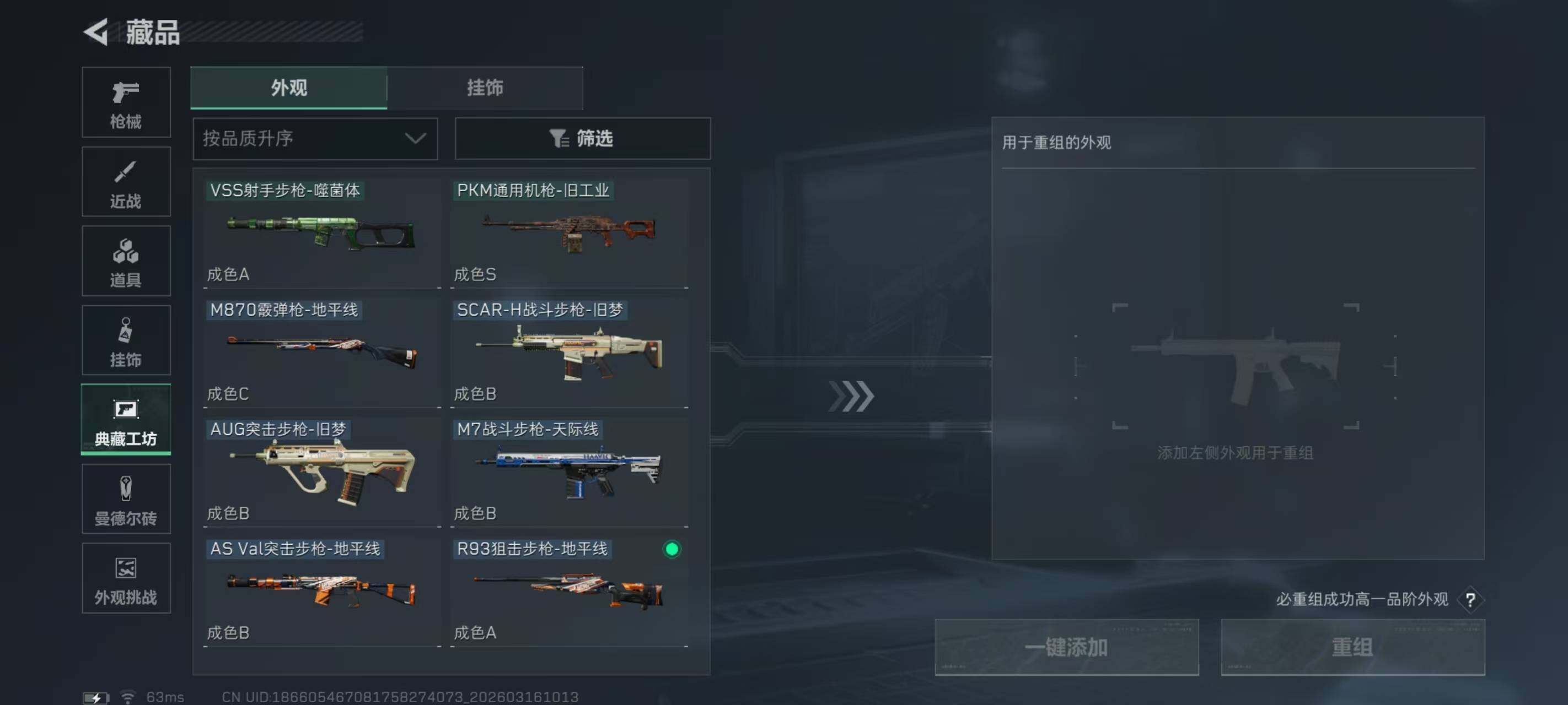 【传说外观】:M4A1突击步枪-蚀金玫瑰,M4A1突击步枪-阿米娅,QBZ95-1突击步枪-凌霄戍卫,ASh-12战斗步枪-鹅鸭杀,AUG突击步枪-悠然