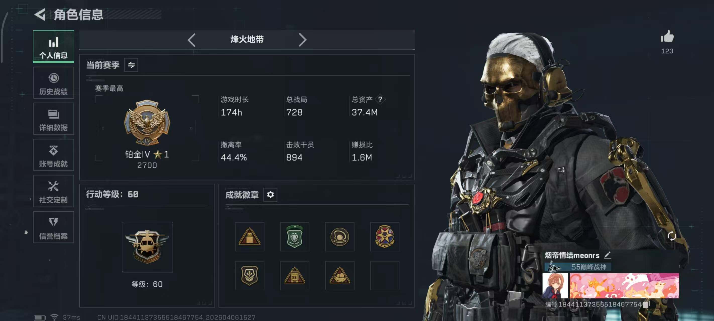 【SJZYT932】总资产(M):37M/哈夫币(K):10307K/哈夫币(K):10307K/传说枪皮数:34/全面战场等级:50_段位:尉官/烽火地带等级:60_段位:铂金/红狼-蚀金玫瑰/露娜-黑·天际线/蜂医-送葬人·无题密令/深蓝-不破誓约/近战-暗星/近战-信条/近战-处刑者3级/近战-黑鹰/M4A1突击步枪-蚀金玫瑰/M4A1突击步枪-阿米娅/AKM突击步枪-锦绣/ASh-12战