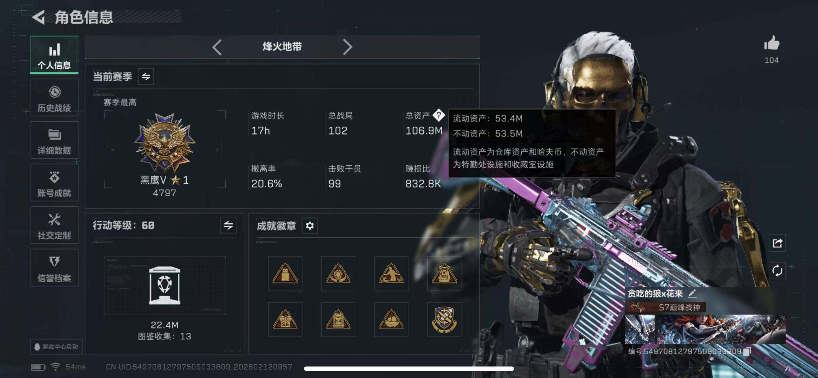【SJ1127】【满体满负】行动等级:60 总资产:111M 哈夫币:271.