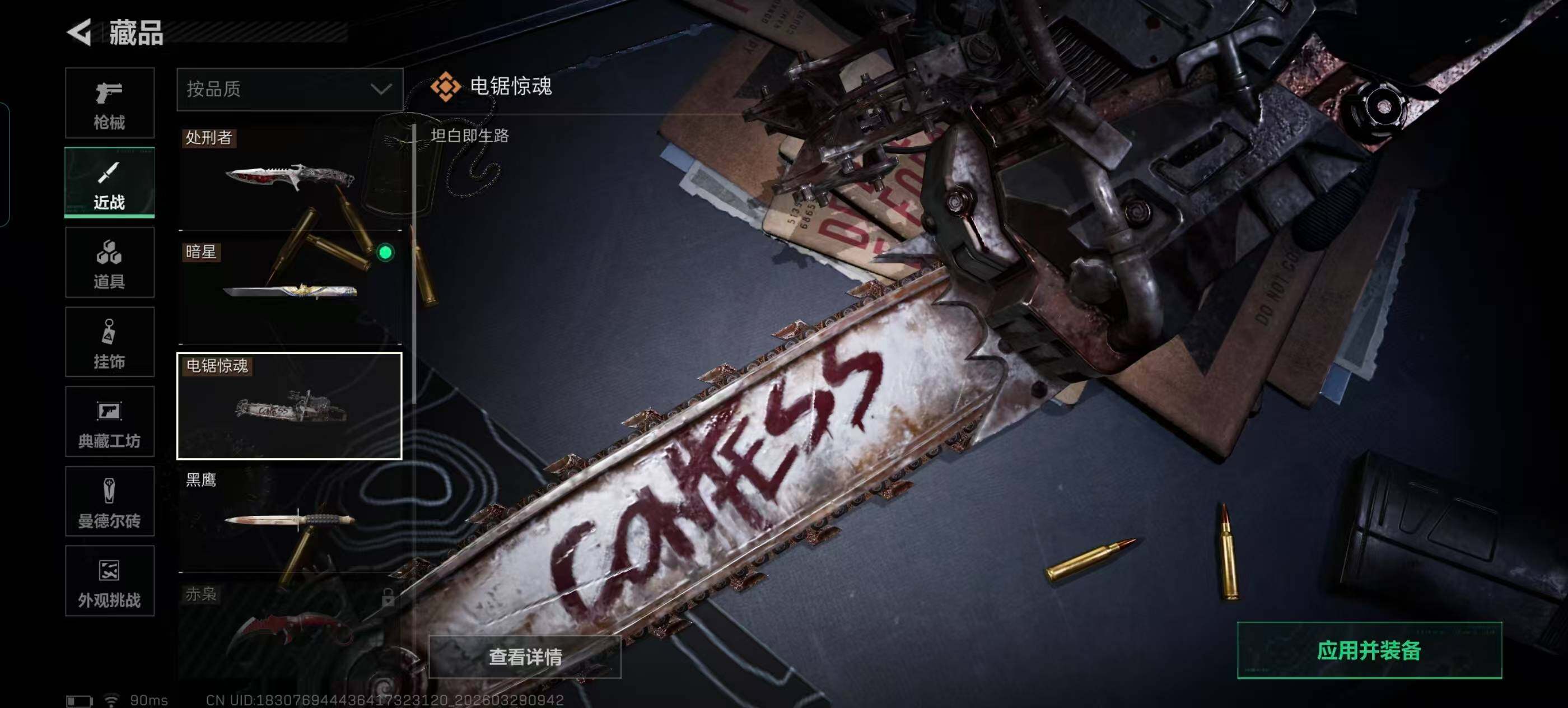 【近战皮肤】:近战-暗星,近战-电锯惊魂,近战-处刑者4级,近战-黑鹰