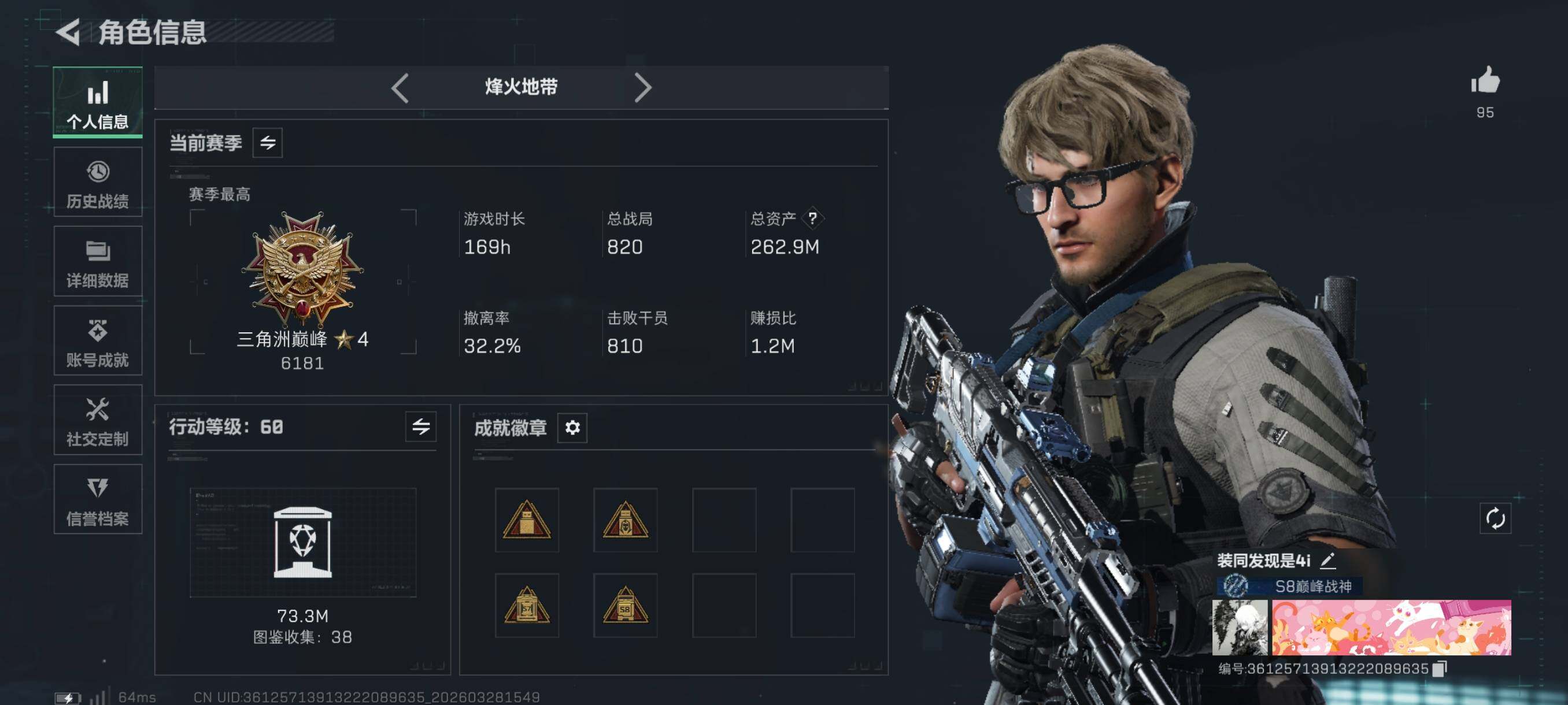{特价出售}等级:60总资产:262.9M 纯币 51027k 刀皮:影锋 信条 特勤处:仓库,8训练7,靶场6 s8赛季九格安全箱