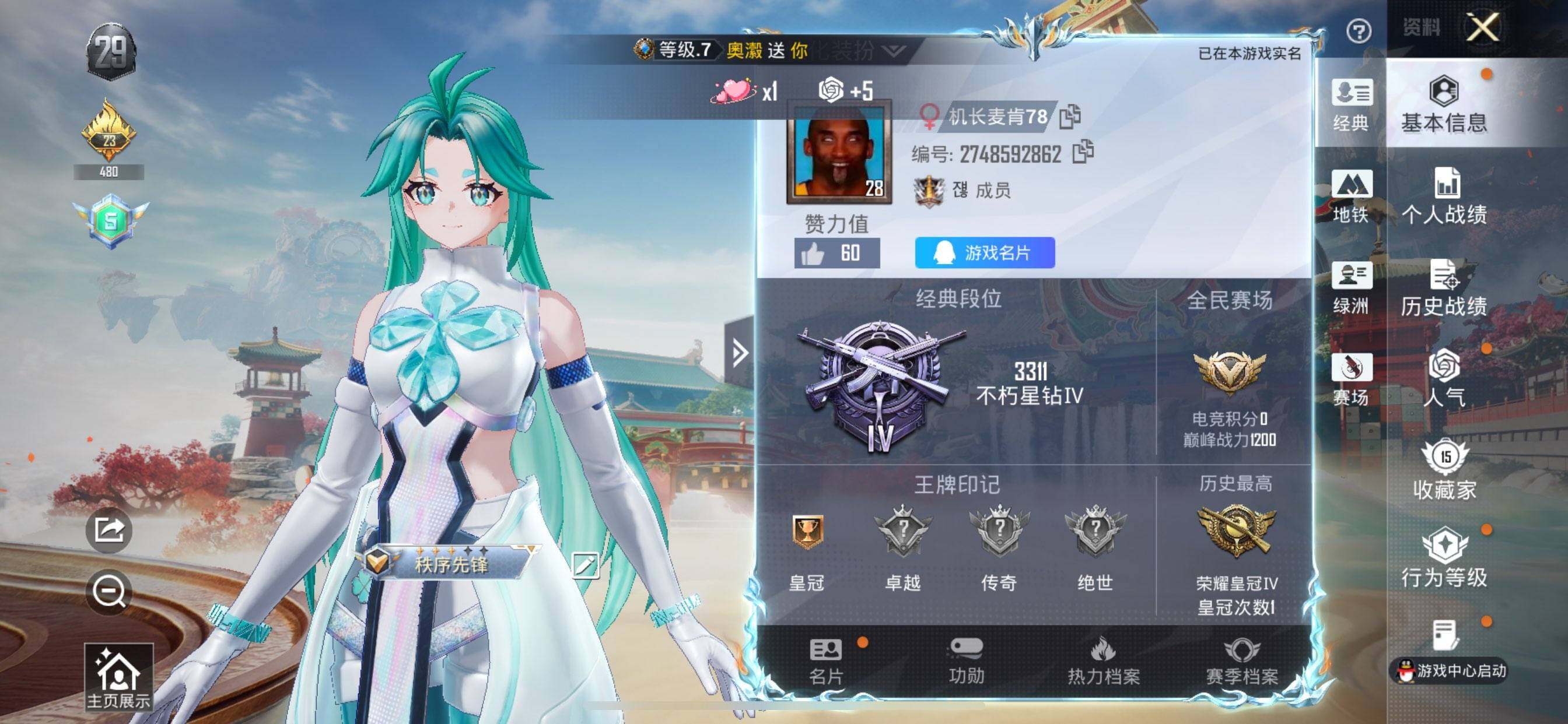 苹果 手Q-0粉装-3特效枪-0载具-0粉色飞行器-7206热力值-1王牌印记