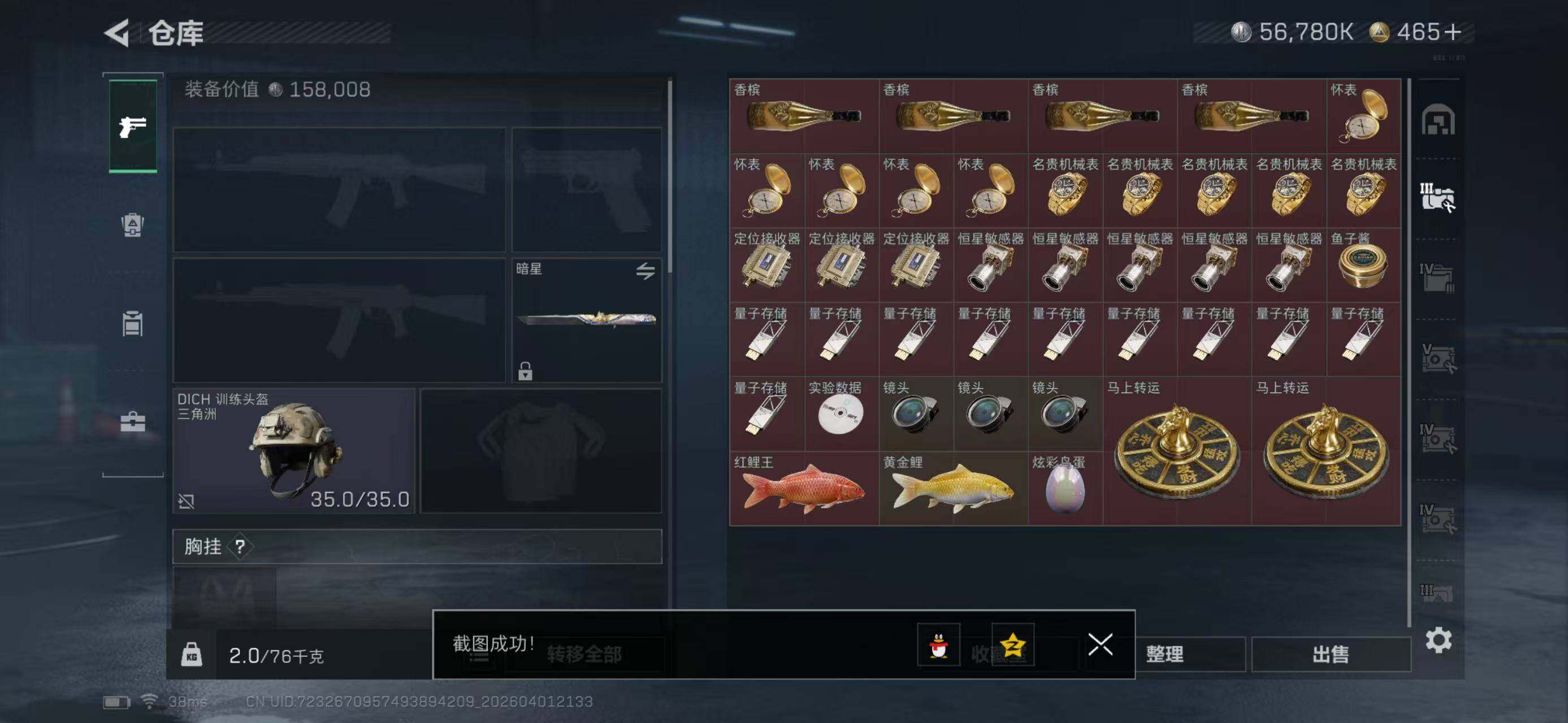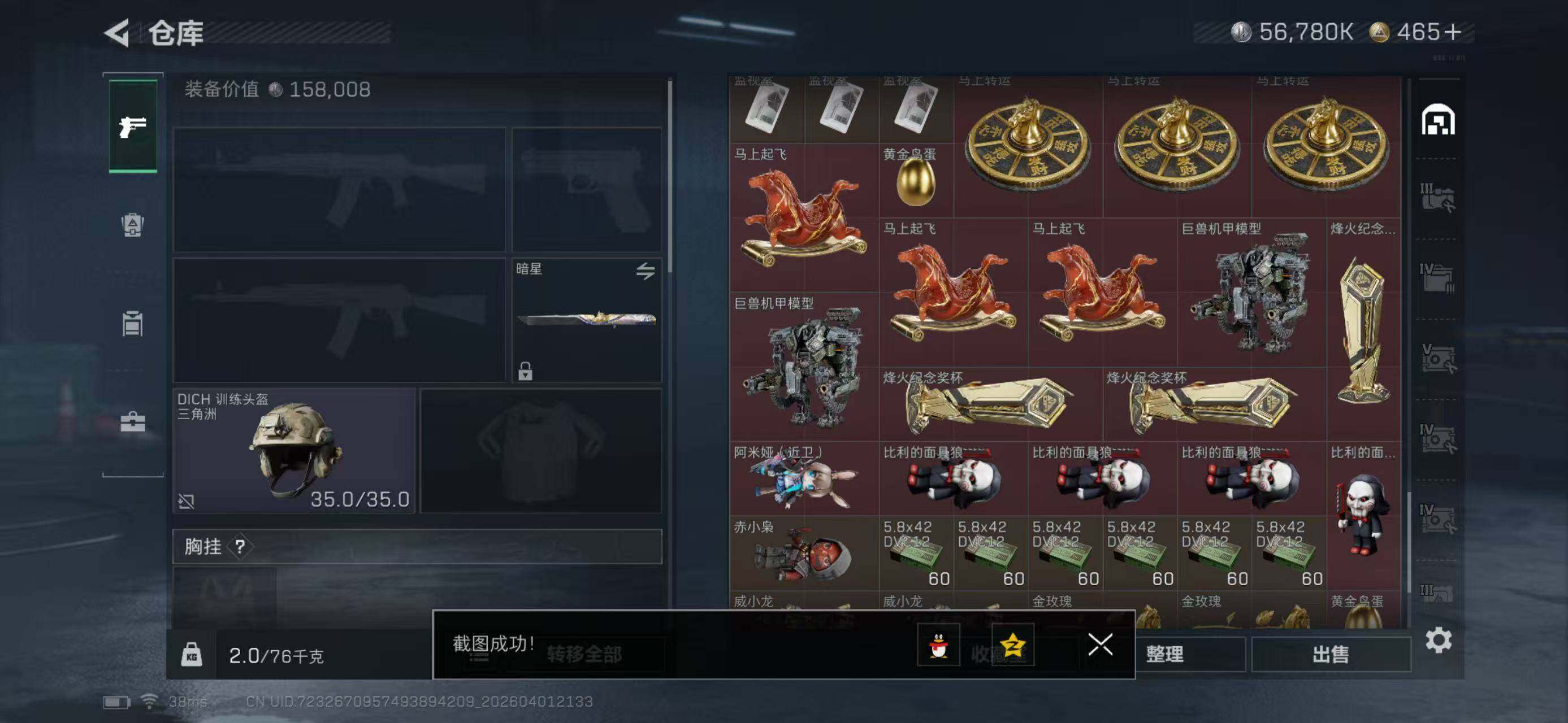 【2967】总资产(M):396M/哈夫币(K):56780K/哈夫币(K):56780K/烽火地带等级:60_段位:钻石/红狼-电锯惊魂/乌鲁鲁-荒原猎手/蛊-不羁人生/近战-暗星/近战-电锯惊魂/近战-黑鹰/特斯拉线圈捆绑包/捞点薯条捆绑包/鹅鸭杀捆绑包/电锯惊魂干员捆绑包/万金泪冠捆绑包/锦绣捆绑包/悠然茶歇捆绑包/M4A1突击步枪-阿米娅/AKM突击步枪-锦绣/ASh-12战斗步枪-鹅鸭