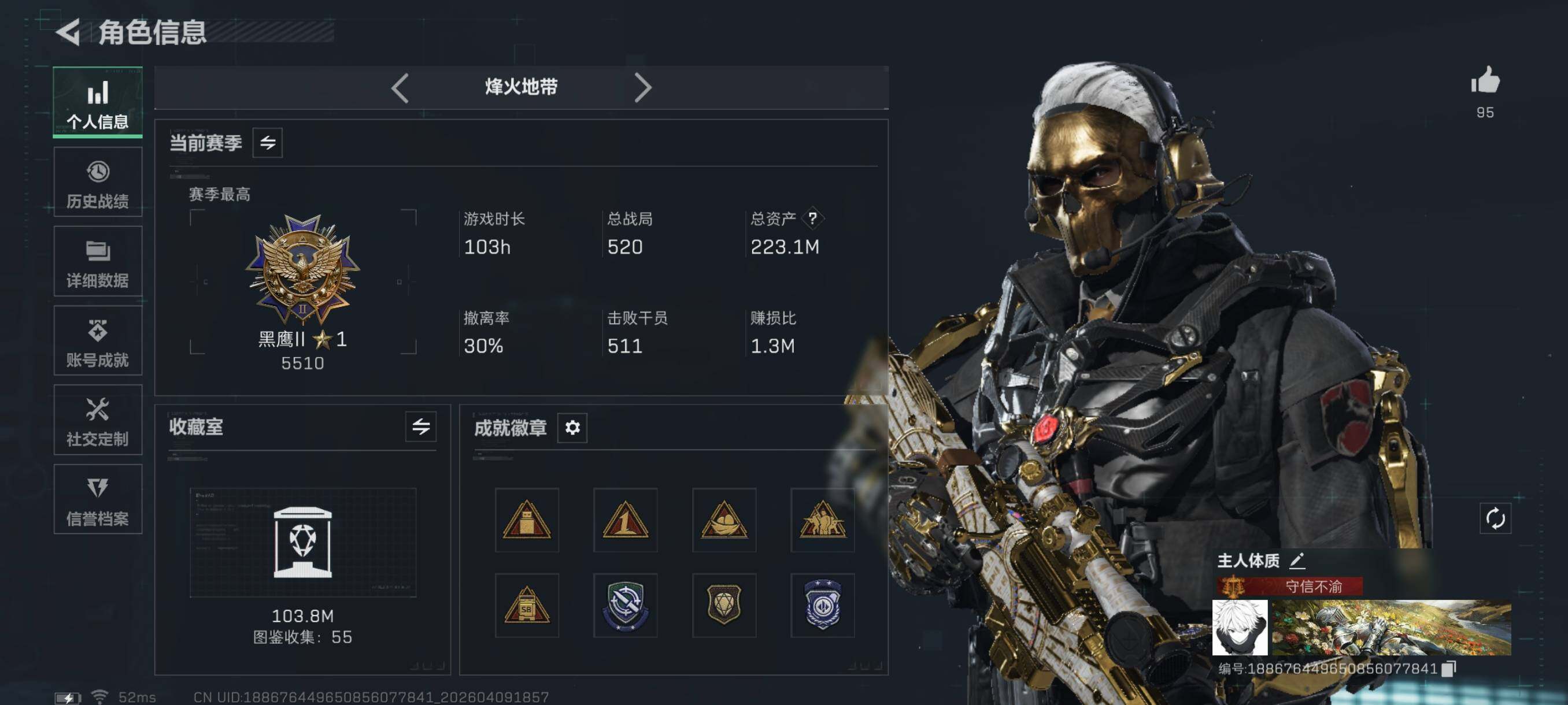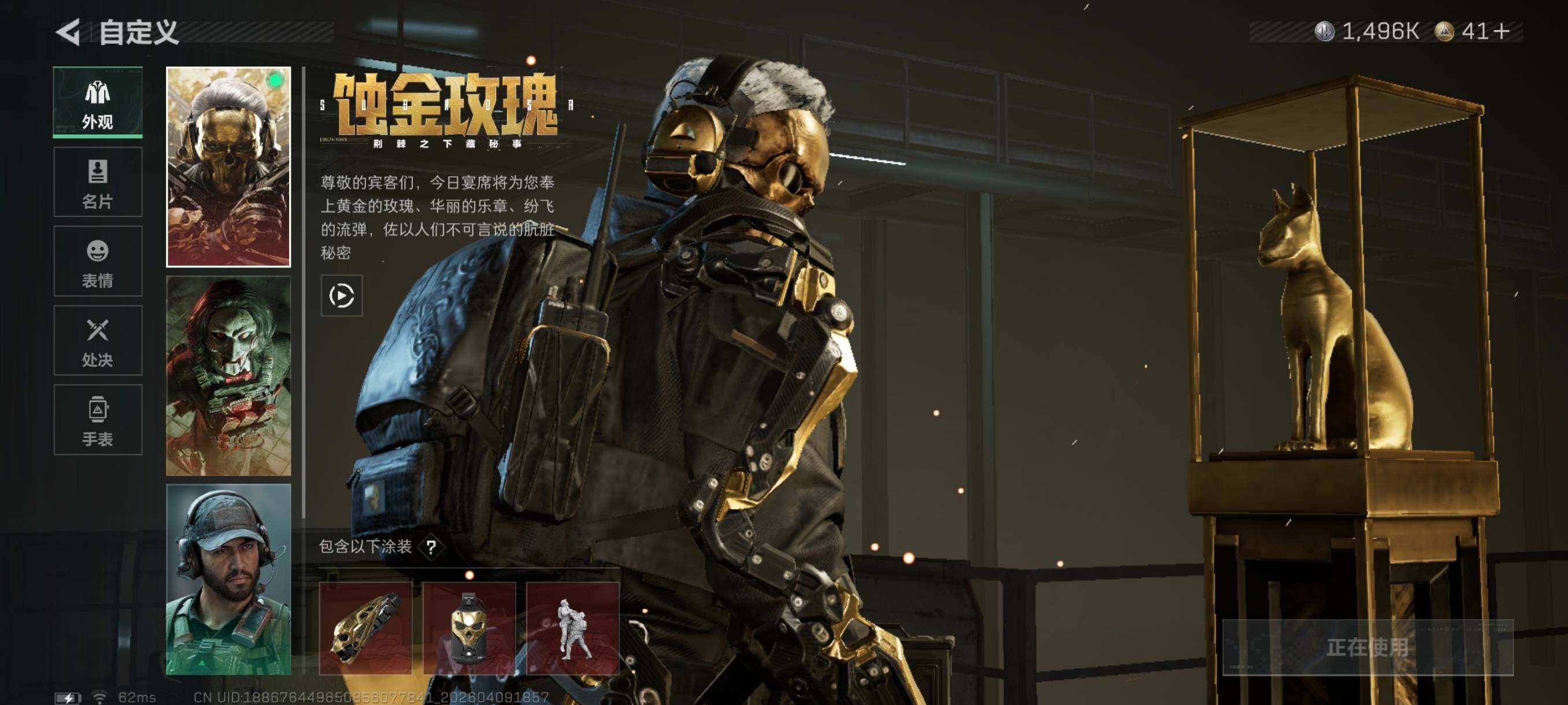 {特价出售}等级:60总资产:223.1M 纯币1496K 红皮:红狼-蚀金玫瑰/乌鲁鲁-荒原猎手/红狼-电锯惊魂/露娜-金牌射手 刀皮:近战-信条 特勤处:仓库9,训练6,靶场6,潜水2