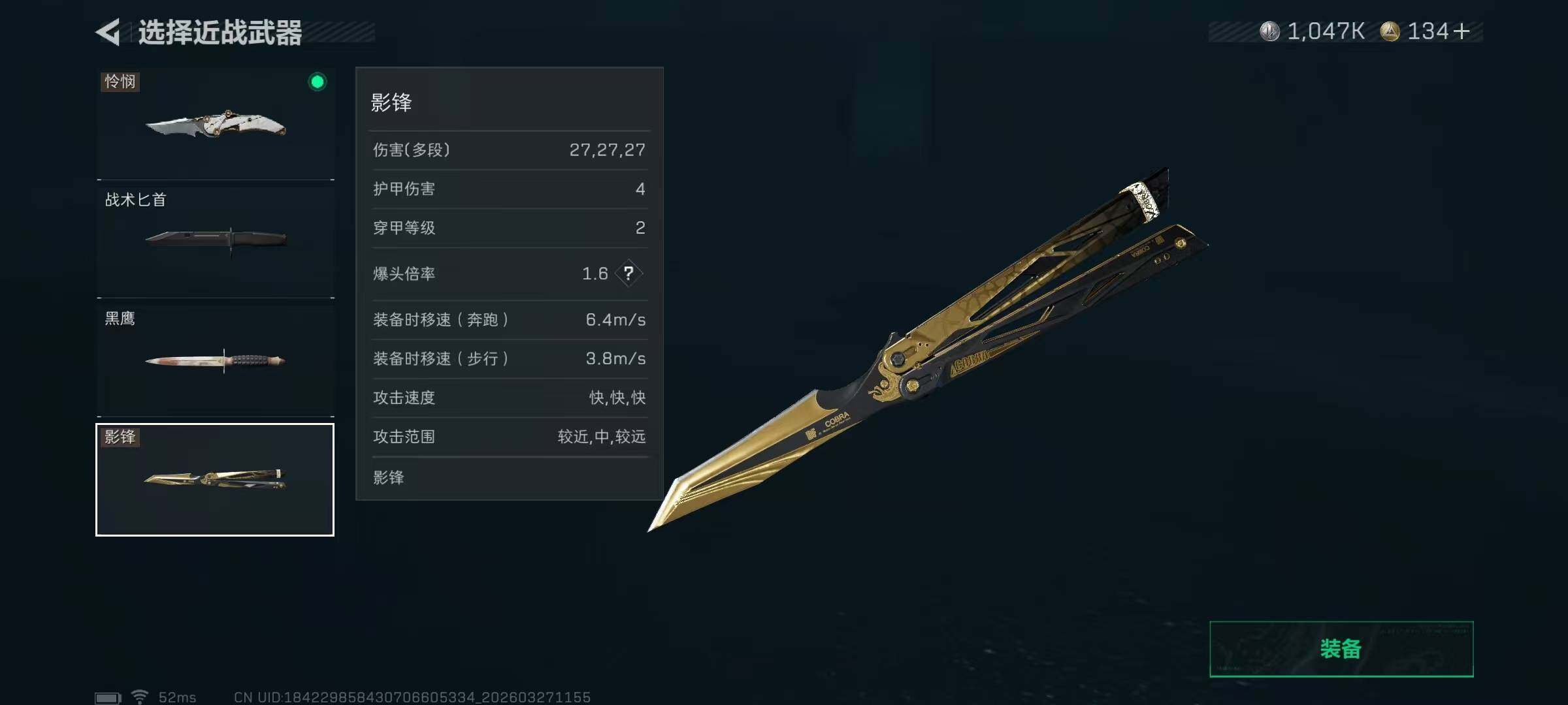 【近战皮肤】:近战-影锋,近战-怜悯,近战-黑鹰