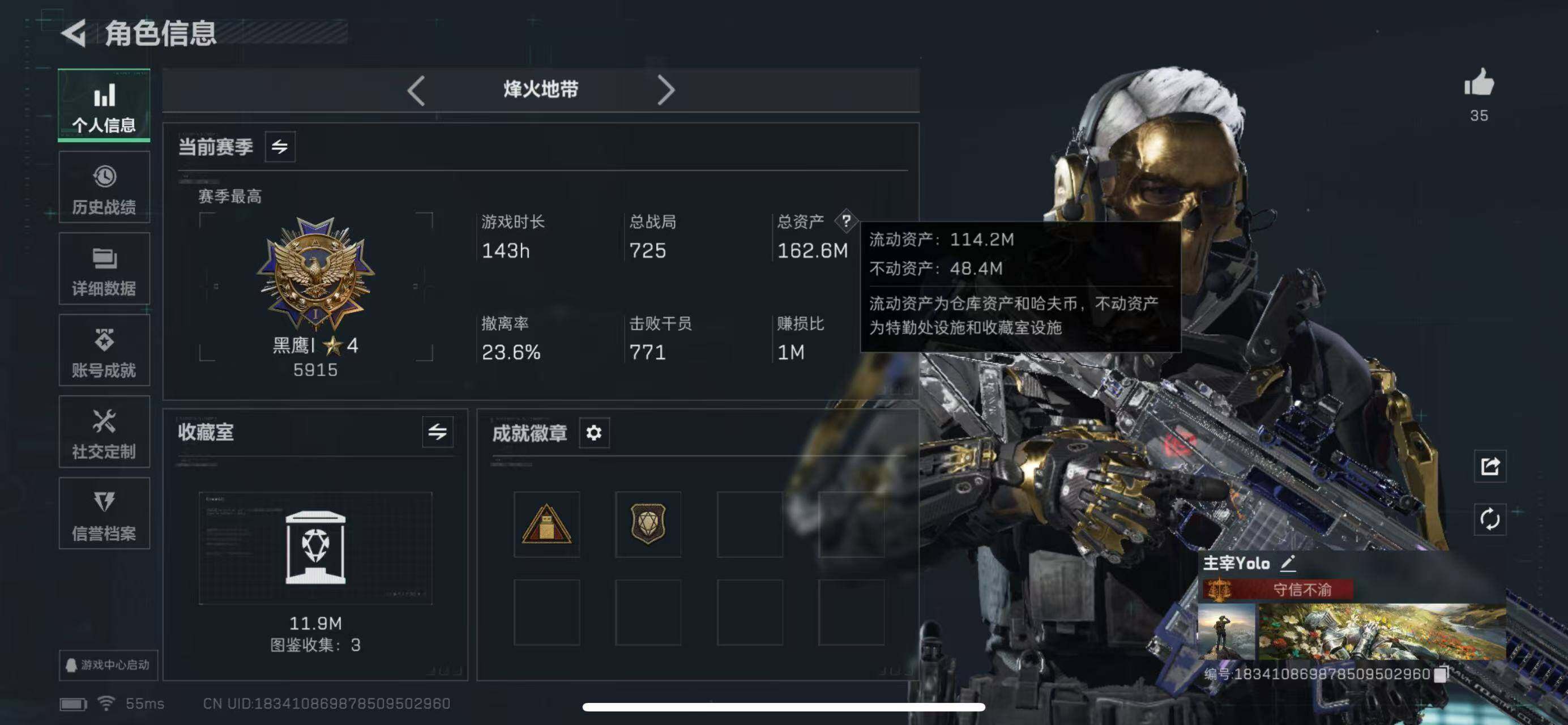 【SJ896】【满体满负】行动等级:60 总资产:162M 哈夫币:5068.