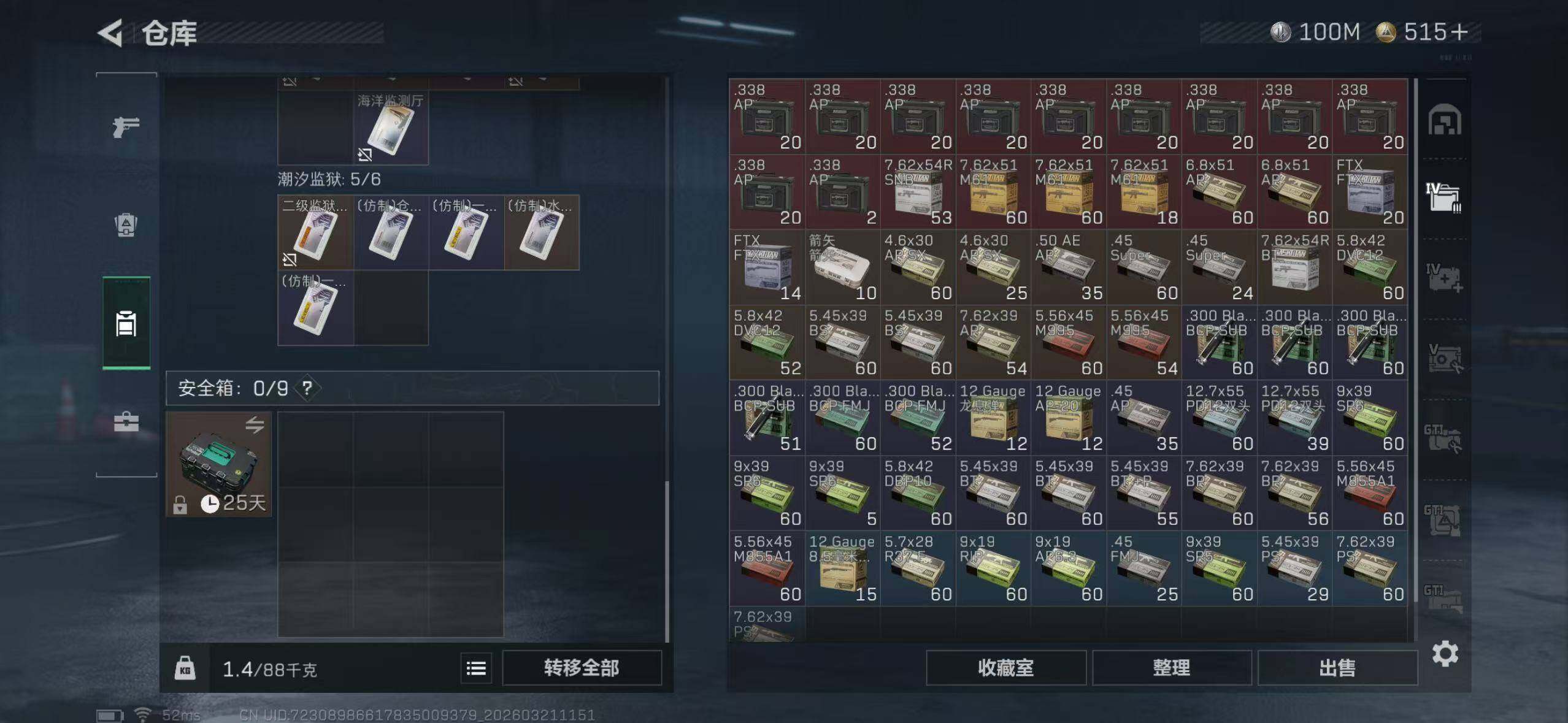 【SJ1489】【满体满负满部门,200发AW】等级:60,总资产:380mM,哈夫币:100M,近战武器:近战武器-暗星,干员皮肤:维什戴尔,不羁人生,安全箱:顶级安全箱9(3x3)