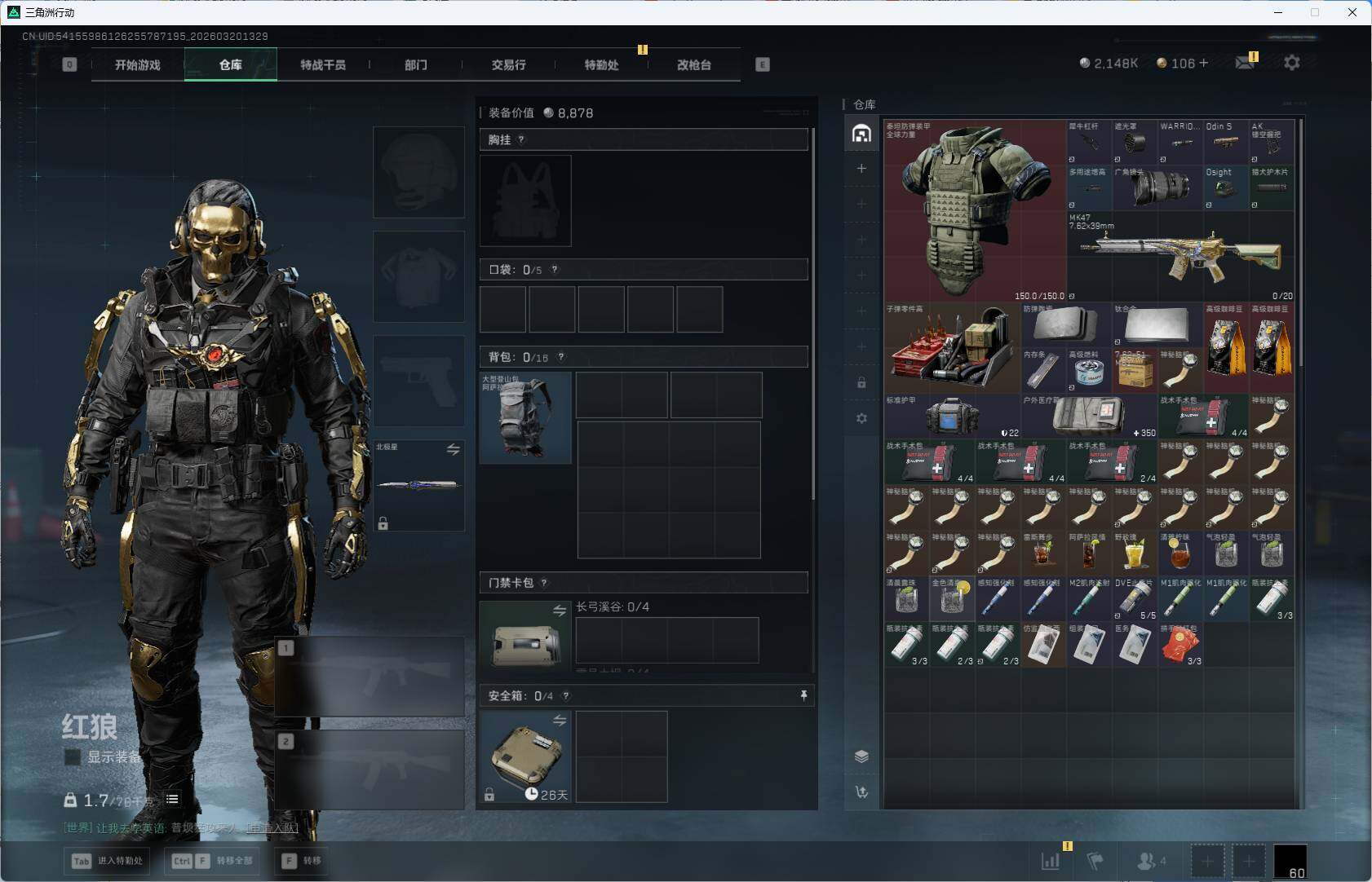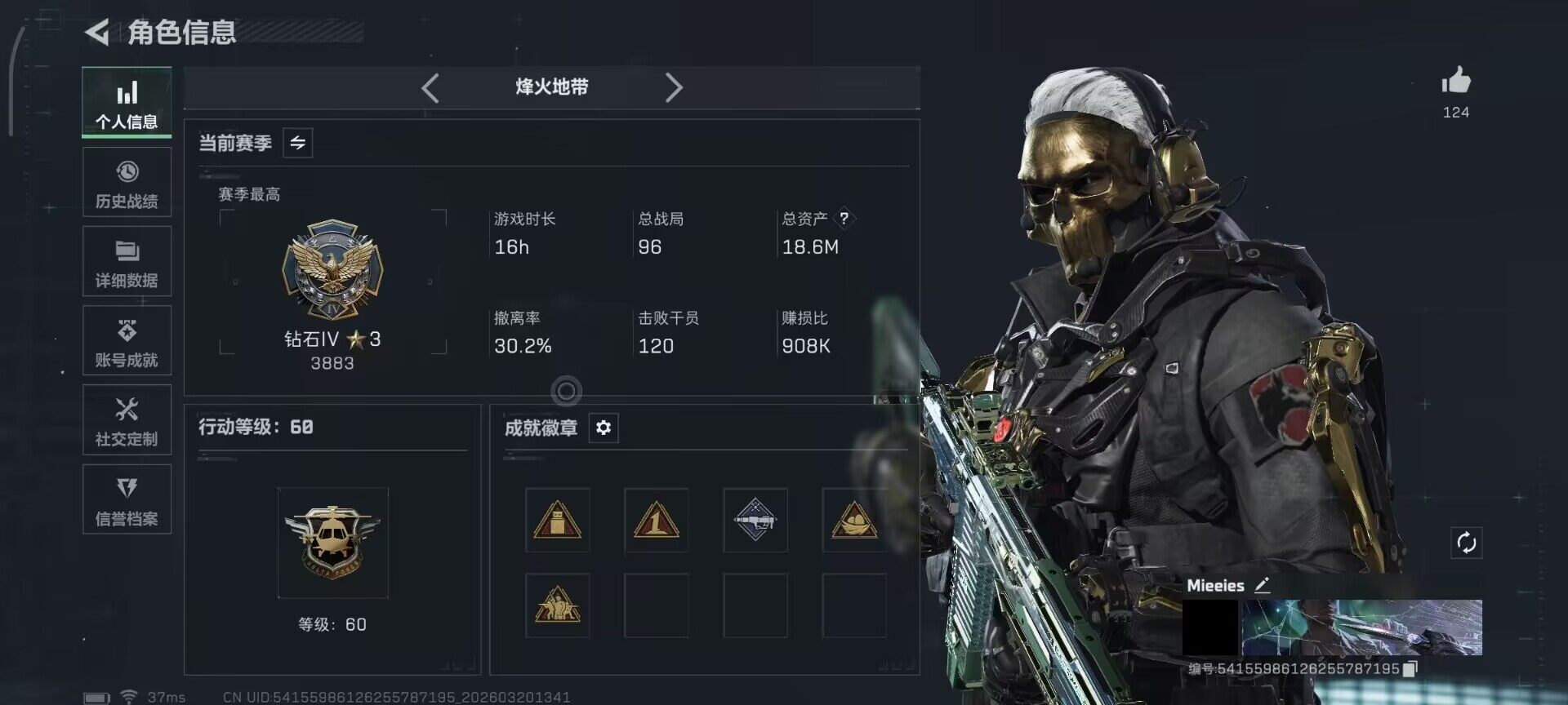 【SJZF6730】总资产(M):21M/哈夫币(K):5162K/哈夫币(K):5162K/传说枪皮数:42/全面战场等级:50_段位:上等兵/烽火地带等级:60_段位:钻石/红狼-蚀金玫瑰/露娜-黑·天际线/蜂医-送葬人·无题密令/深蓝-不破誓约/红狼-电锯惊魂/露娜-金牌射手/蛊-不羁人生/近战-暗星/近战-北极星/近战-信条/近战-处刑者1级/近战-黑鹰/M4A1突击步枪-蚀金玫瑰/M4