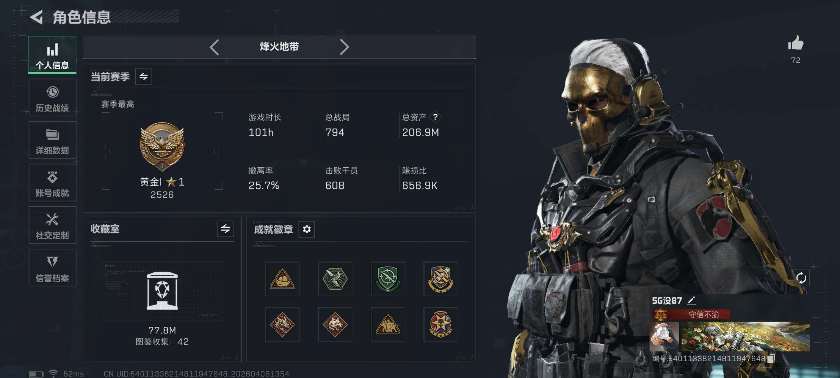 {特价出售}等级: 60 总资产:206.9m流动资产:180.2 M 纯币605366 红皮: 蚀金玫瑰 凌霄戍卫 战令皮肤:无题密令 刀皮:信条 特勤处:仓库,8训练,4靶场3