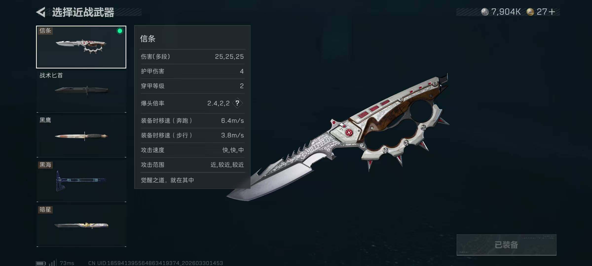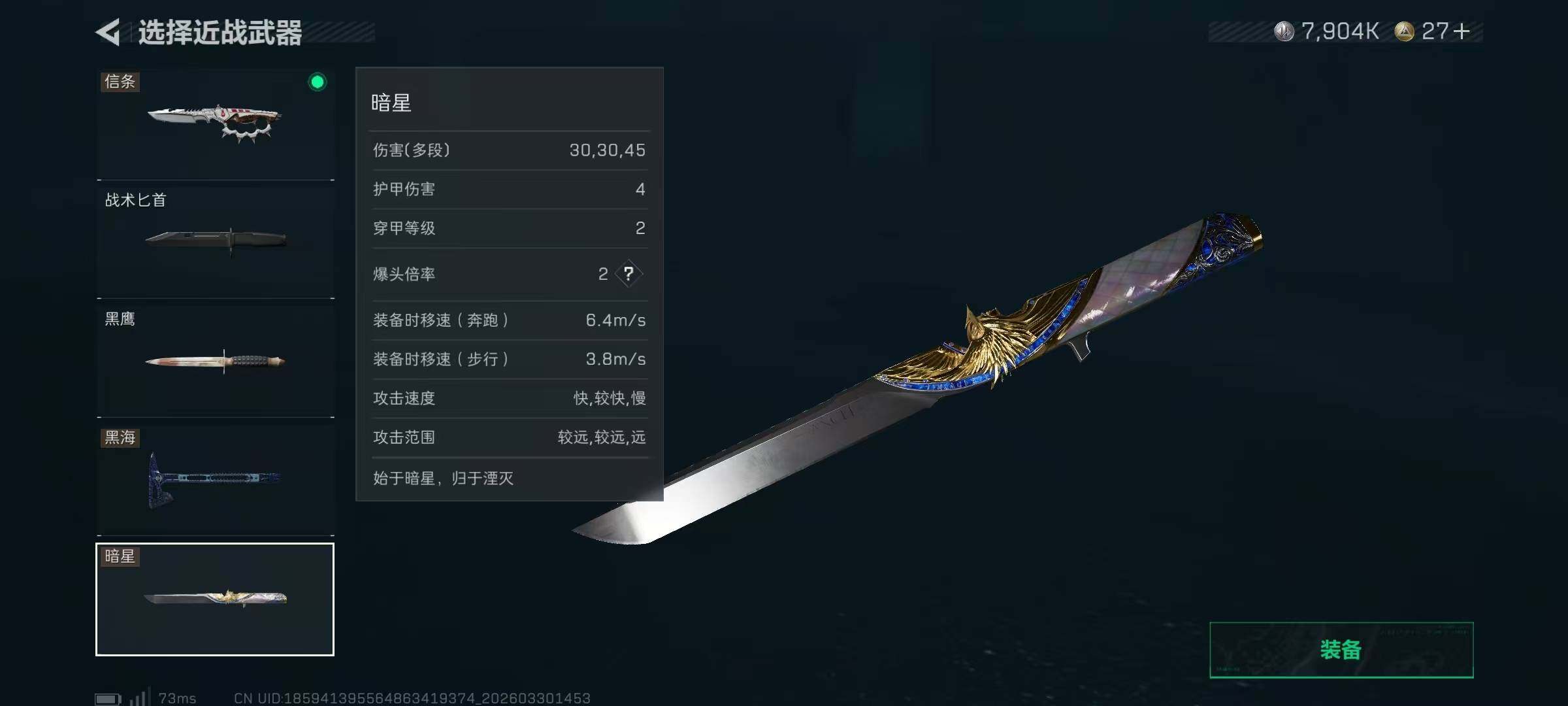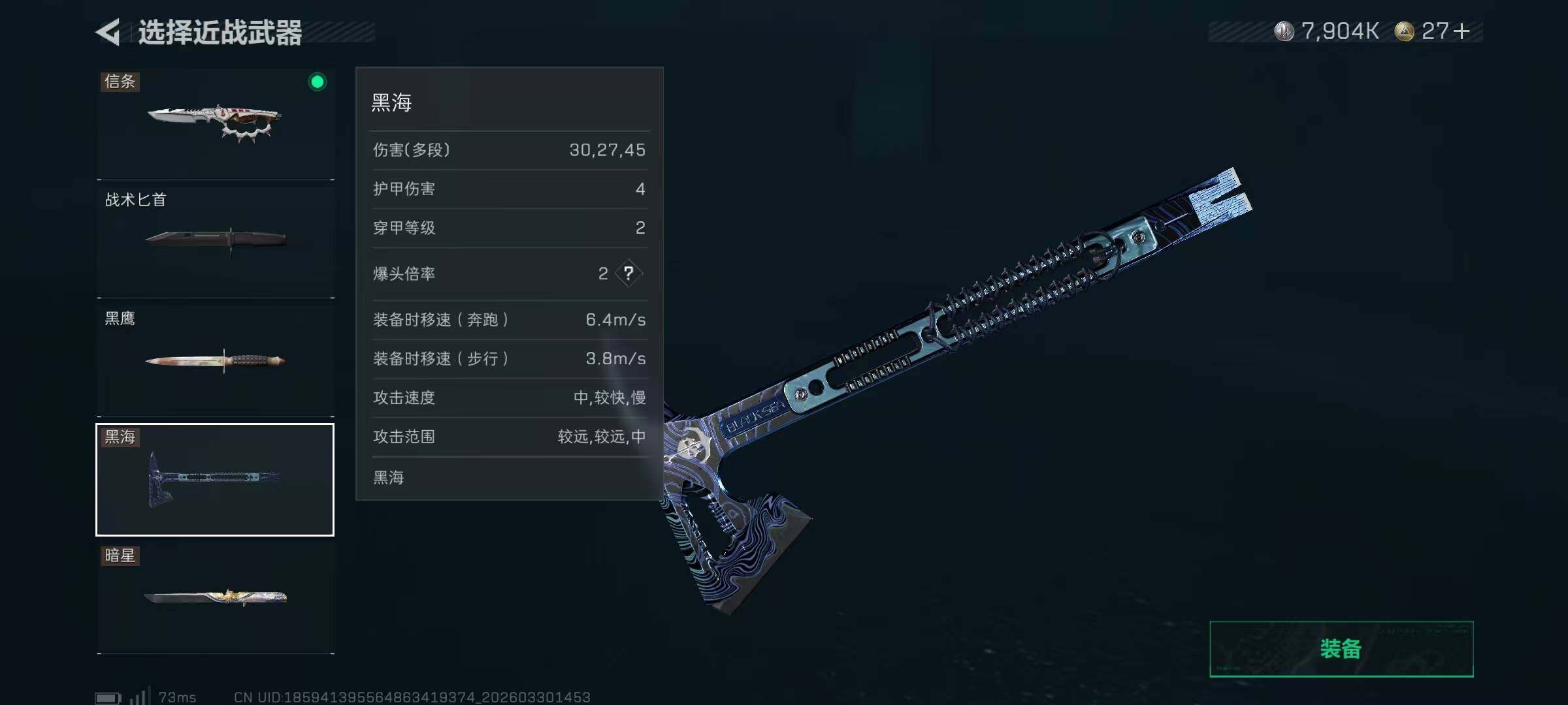 【近战皮肤】:近战-暗星,近战-信条,近战-黑海,近战-黑鹰