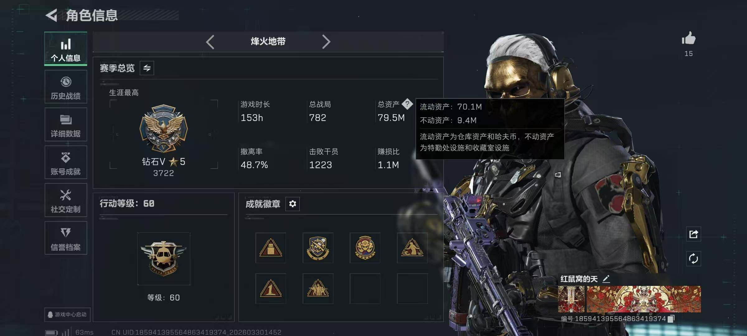 【SJ1601】【有二次信条暗星黑海带S8高级3X2】60级/总资79M/流资70M/ASVal突击步枪-悬赏令(优品C)刀皮(黑海+信条+暗星)红狼(蚀金玫瑰+电锯惊魂)深蓝(不破誓约)露娜(金牌射手)/5级仓库6级体力4级负重1级潜水
