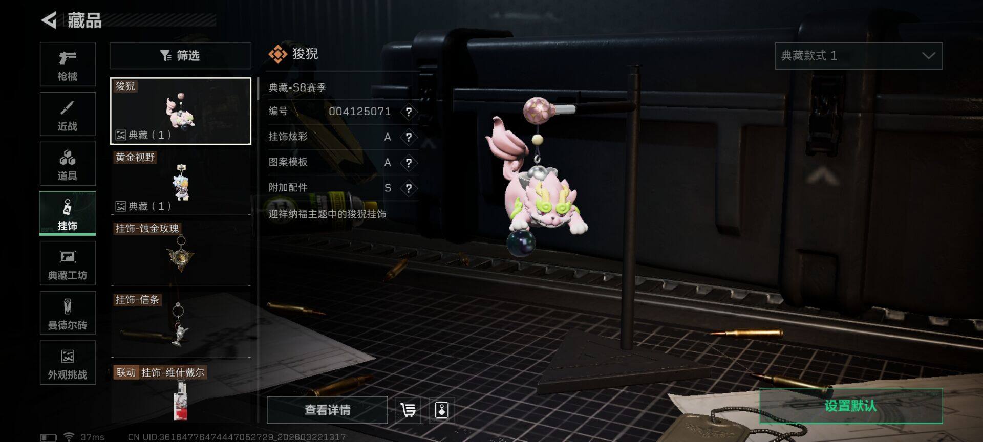 【SJZX1806】总资产(M):74M/哈夫币(K):1348K/哈夫币(K):1348K/传说枪皮数:16/全面战场等级:33_段位:军士长/烽火地带等级:60_段位:铂金/红狼-蚀金玫瑰/骇爪-维什戴尔/红狼-电锯惊魂/露娜-金牌射手/乌鲁鲁-荒原猎手/近战-信条/近战-怜悯/近战-黑鹰/M4A1突击步枪-蚀金玫瑰/AKM突击步枪-锦绣/M7战斗步枪-巳蛇/SG552突击步枪-运动员/SC