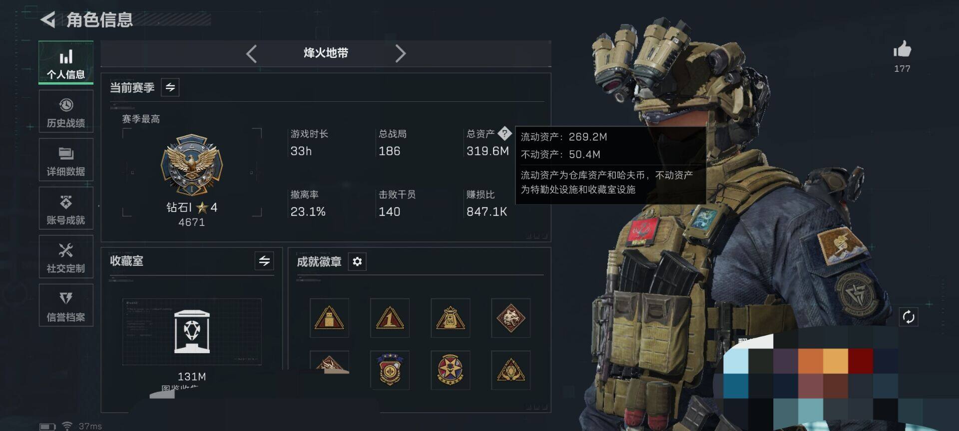 【SJZX1676】总资产(M):319M/哈夫币(K):182K/哈夫币(K