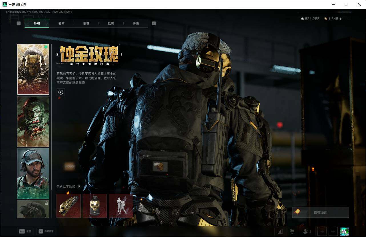 【SJZF6982】总资产(M):183M/哈夫币(K):531K/哈夫币(K):531K/传说枪皮数:38/全面战场等级:31_段位:军士长/烽火地带等级:60_段位:黑鹰/红狼-蚀金玫瑰/骇爪-维什戴尔/威龙-凌霄戍卫/深蓝-不破誓约/红狼-电锯惊魂/露娜-金牌射手/乌鲁鲁-荒原猎手/蛊-不羁人生/近战-北极星/近战-信条/近战-黑鹰/M4A1突击步枪-蚀金玫瑰/M4A1突击步枪-阿米娅/A