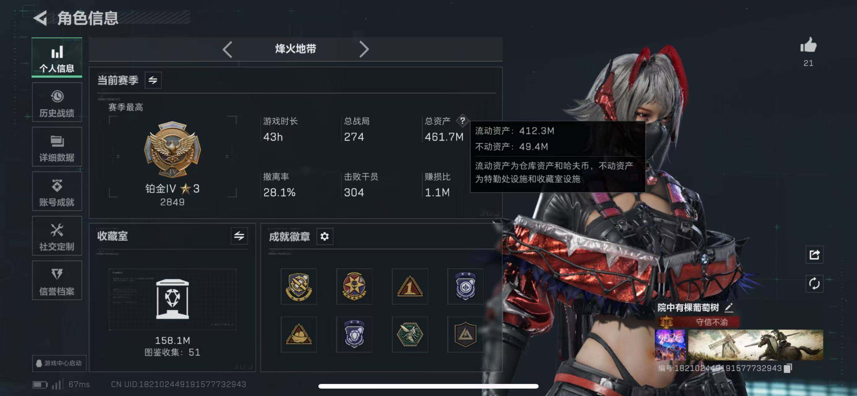 【SJ819】462m总资产-6324k哈伏币-60烽火等级-铂金-25战场等级-列兵