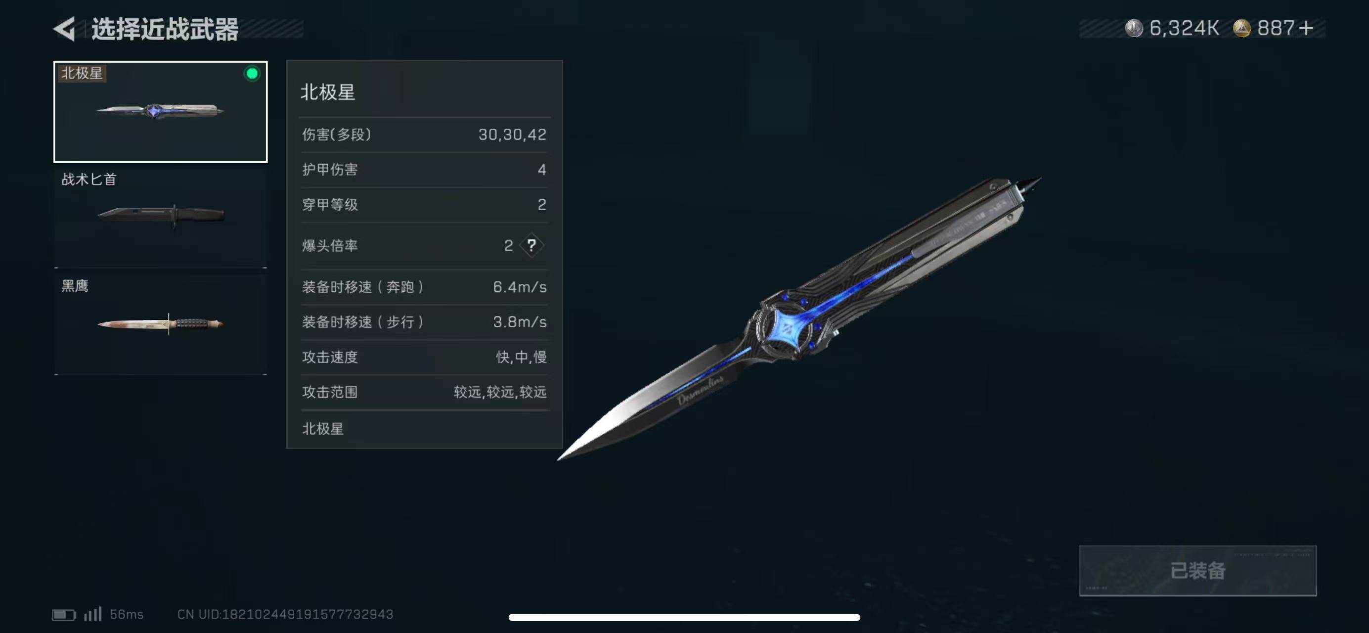 【近战皮肤】:近战-北极星,近战-黑鹰